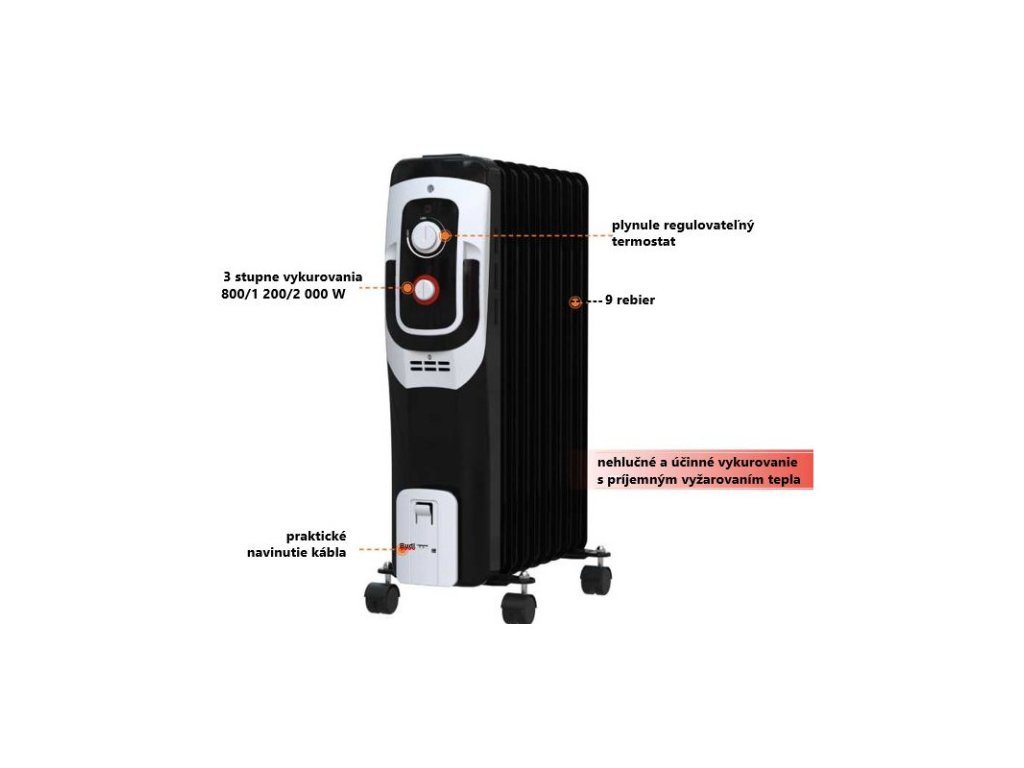 Pohodlné a mobilné riešenie vykurovania rôznych lokalít. Prenosný radiátor na vykurovanie obytných priestorov, dielní alebo garáží. Maximálna bezpečnosť vďaka ochrane proti prevráteniu a prehriatiu, ako aj vďaka kontrolkám prevádzky. Vďaka plynule regulovateľnému termostatu sa môže použiť aj ako ochrana proti mrazu. Integrovaná rukoväť a kolieska na pohodlnú a bezpečnú prepravu, aj keď je radiátor horúci. Praktické navinutie kábla na podstavci.