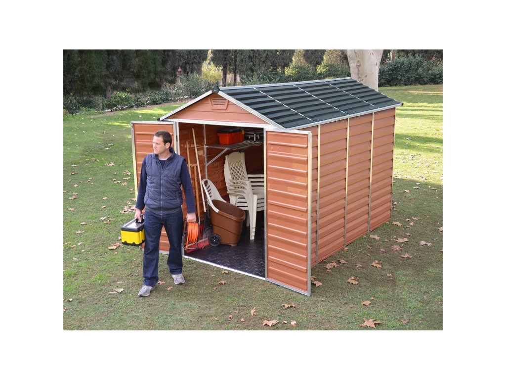 ŠPIČKOVÝ POLYKARBONÁT S UV OCHRANOU OD SPOLEČNOSTI PALRAM OSVĚTLENÝ INTERIÉR DÍKY NOVÉ TECHNOLOGII STŘECHY PROPOUŠTĚJÍCÍ SVĚTLO PEVNÝ HLINÍKOVÝ RÁM NEPODLÉHAJÍCÍ KOROZI PROTISKLUZOVÁ PODLAHA SOUČÁSTÍ DODÁVKY SNADNÉ SESTAVENÍ A MONTÁŽ ZÁRUKA 10 LET! Nová řada roku 2014 s novým, robustním hliníkovým rámem a vylepšeným designem. Špičkově zpracované a nesmírně odolné zahradní domky Skylight z polykarbonátu nejvyšší kvality a se střechou ze speciálního polykarbonátu, který propouští sluneční světlo do interiéru domku. Ideální na uložení zahradního náčiní, sportovního vybavení, grilovacích potřeb nebo zahradního nábytku. Výběr materiálu u zahradního domku je naprosto zásadní. Plechové domky či levné plastové domky z polyethylenu mají mnoho nepříjemných vlastností, které zkracují jejich životnost. Ať už je to rez nebo křehnutí plastu, špatná odolnost těchto materiálů vůči hrubšímu zacházení, horší odolnost proti sněhové nadílce či kroupám. Nejmodernějším materiálem dnes je polykarbonát, který žádnou z těchto nectností netrpí. Musí to být ovšem kvalitní polykarbonát s dokonalou UV ochranou. Takový, který vyrábí například společnost PALRAM a který se světoví architekti nebojí používat na těch nejzajímavějších stavbách dneška. Více na http://www.palram.com/Profile_Video . Chcete-li se po mnoho let těšit z opravdu kvalitního výrobku a využít veškeré technické know-how lídra na trhu, doporučujeme Vám zvolit zahradní domek od společnosti Palram. Výhody: • Prakticky nerozbitné stěny i střecha z polykarbonátu s UV ochranou. Na rozdíl od běžných plastových domků z polyethylenu PE nikdy nezkřehnou a bez problémů odolají změnám teplot, přívalům sněhu nebo krupobití. Oproti plechovým domkům nikdy nereznou a stěnu nelze prakticky promáčknout či jinak poškodit. Není je potřeba ani natírat, či se bát plísně a hniloby jako u dřevěných domků. • Unikátní systém snadného nasunutí polykarbonátových panelů do hliníkových profilů • Nerezová konstrukce ze silných hliníkových profilů • Unikátní střecha z polykarbonátu propouštějícího světlo prosvětluje domek zevnitř • Vysoká nosnost střechy 75 kg/m2 • Bezúdržbové a snadno omyvatelné. Žádné starosti z nátěrem, hnilobou či rzí. • Zamykatelné, lehce otvíratelné, široké dvoukřídlé dveře v hliníkovém rámu • Účinná ventilace na obou stranách štítu • Protiskluzová podlaha s možností ukotvení je součástí dodávky • Snížený nájezd usnadní manipulaci s kolečkem či travní sekačkou • Možno zvolit i v moderní šedé barvě (obj. č. 702302) Snadná manipulace: • Dodávka v lehkém jednotném balení • Ideální pro objednání přes e-obchod • Minimální nároky na skladování v nesloženém stavu • Přehledný návod, jednoduché sestavení ve 2 osobách • Hotový domek může být snadno přemístěn na jiné místo Velmi dlouhá životnost a odolnost: • Prakticky nerozbitné polykarbonátové panely • Robustní hliníková konstrukce, která nikdy nezrezne • Vynikající odolnost proti všem vlivům počasí • 100% UV ochrana polykarbonátových panelů • Bez nároků na údržbu • Možnost ukotvení k zemi Snadná montáž a minimální potřeba servisu: • Unikátní systém zasouvání panelů bez nutnosti dalších zajišťovacích prvků • Přehledný návod, který Vás krok po kroku provede montáží • Konstrukční prvky domků Palram jsou jednotné, proto nikdy není problém s náhradními díly ani po mnoha letechDodatočné parametre