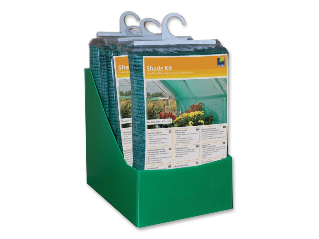 Na ochranu rostlin, které nevyžadují přímý sluneční svit nebo na ochranu rostlin přes přílišným horkem, je možné použít lehkou textilní zástěnu, která pohltí až 70% prudkého slunečního záření. Zástěna má rozměr 230 x 265 cm a jednoduchým mechanismem se upne ke stěnám skleníku.Dodatočné parametre