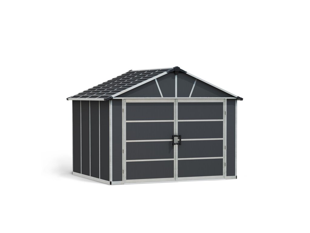 Obrovský, ultra odolný domek s možností prodloužení díky unikátnímu modulárnímu systému Základní domek o rozměrech 271 x 332 cm, lze kdykoliv zvětšit přidáním modulu o délce 124 cm a vytvořit velký zahradní domek o rozměrech 395 x 332 cm. Domek je vyroben ze špičkového vyztuženého polykarbonátu se 100% UV ochranou, takže materiál nikdy (na rozdíl od levných domků z polyethylenu PE) nezkřehne a bez problémů odolá změnám teplot, dešti, přívalům sněhu nebo kroupám po desítky let. Zesílená konstrukce z hliníkových profilů rovněž nikdy nezrezaví Pozinkovaná ocelová základna výrazně zvyšuje pevnost a odolnost domku Unikátní střecha z polykarbonátu propouštějícího světlo prosvětluje domek zevnitř Polykarbonát je bezúdržbový, prakticky nerozbitný a snadno se čistí. Žádné starosti s nátěrem, hnilobou či rzí. Široké (cca 148 cm) dvojité zamykatelné dveře v hliníkovém rámu s nízkým prahem Možnost vybavit LED osvětlením a poličkami SkyLight Utility Shelf, které se jednoduše montují na rám domku. Standardně dva větrací otvory, integrované okapy, speciální vnitřní kovové výztuhy Snadné sestavení svépomocí Ideální pro uložení travního traktoru, sekačky, nábytku a dalšího zahradního náčiní Dodává se se bez podlahy Krásná moderní antracitová barva Sněhová odolnost:100 kg/m2 Odolnost proti větru: 120 km/hod Prostupnost světla: Střecha – 10% Integrované okapy Prakticky nezničitelný polykarbonát Uzamykatelné dveře „Šindelová“ střecha s difůzním prosvětlením interiéru Pozinkovaná ocelová základna Široké dvojité dveře Prostorný vstup s nízkým prahem Účinná přední a zadní ventilaceDodatočné parametre