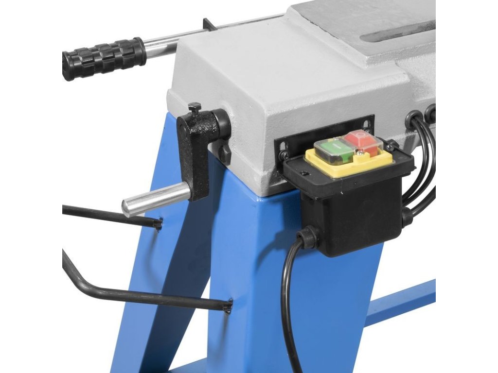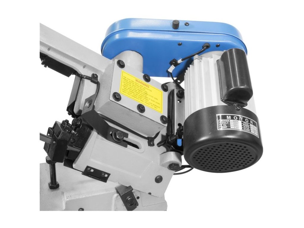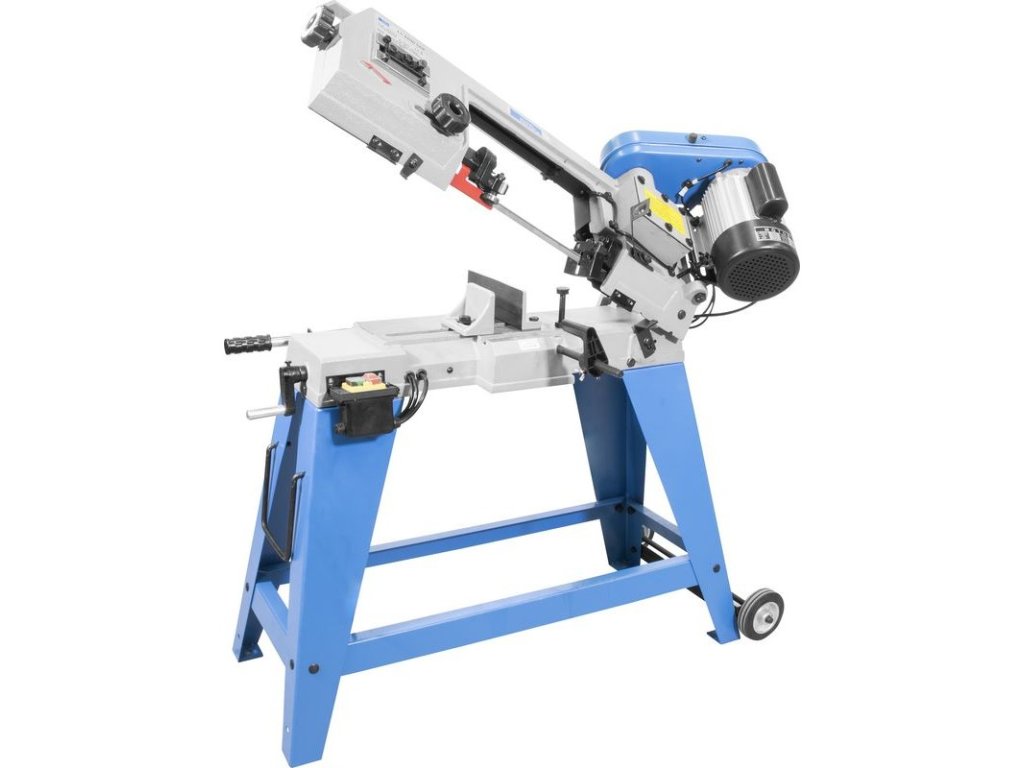 Vertikálna alebo horizontálna pásová píla s nastaviteľným posuvom pílového pásu, stabilná konštrukcia. Nastaviteľný zverák, uhlové rezanie 90 - 45°. Transportné manipulačné držadlo, 2 kolieska.