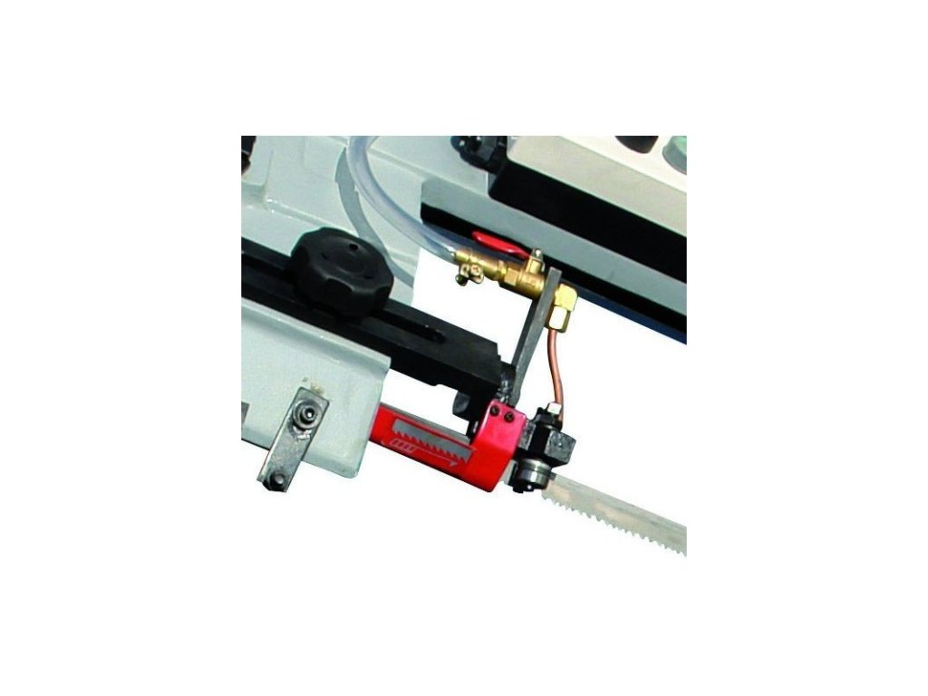 Pásová píla na kov s konštrukciou z liatiny. 3-bodové vedenie pílového pásu s guľôčkovými ložiskami. Rýchloupínací zverák, bimetalový pílový pás. Chladiace zariadenie, automatický koncový vypínač. Kefka na piliny. Presne nastaviteľné spúšťanie pomocou hydraulického valca.