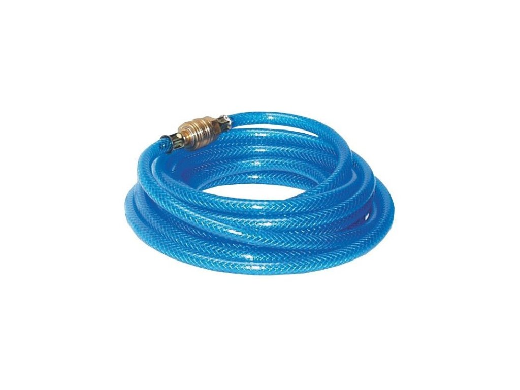 Hadica z PVC s tkanivovou vložkou, vrátane vsuvky a rýchlospojky, vhodná pre pripojenie pneumatického náradia. Odolná voči olejovým prímesiam (v stlačenom vzduchu) i nízkym teplotám.