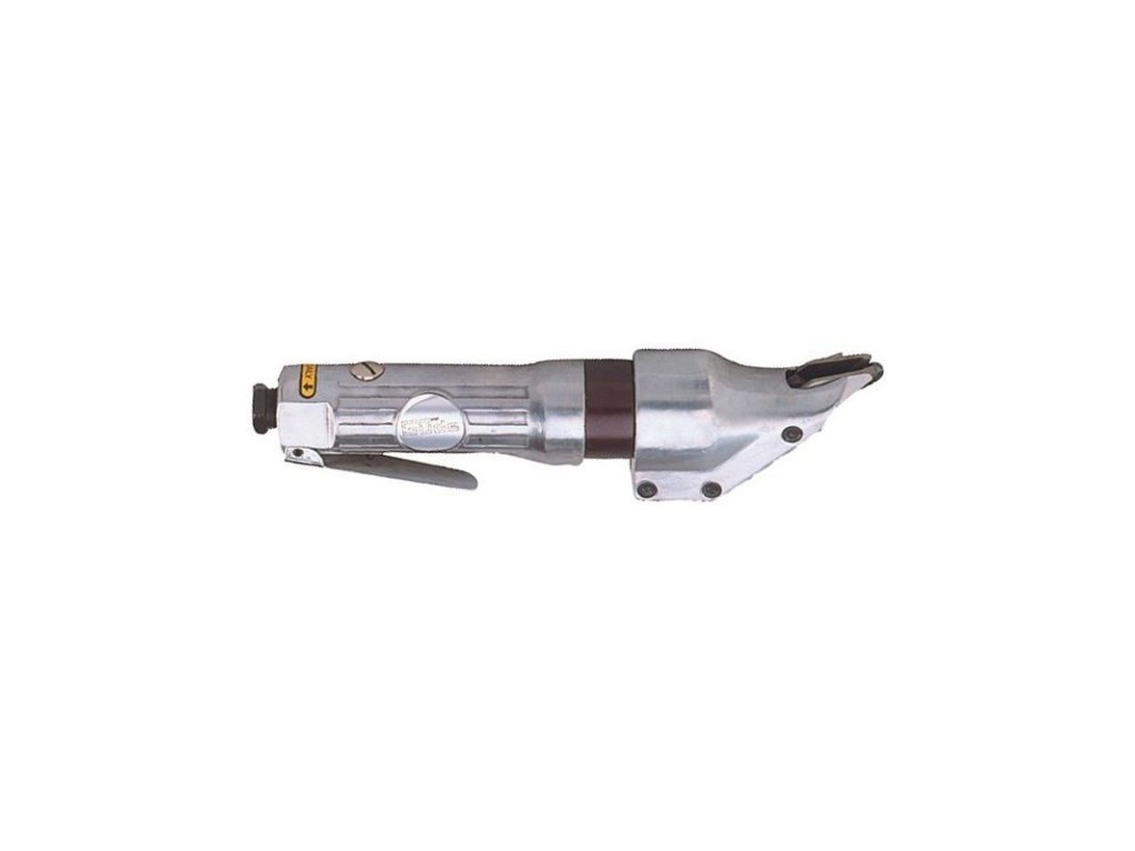Pneumatické nožnice s tyčovou rukoväťou, dvomi pevnými postrannými nožmi a stredovým nožom s pohonom pomocou excentra, na strihanie plechov, hliníka, ocele do hrúbky 1,0 mm (spracovanie zahnutých rezov od polomeru 100 mm). Jednoduché ovládanie, prípojná vsuvka.