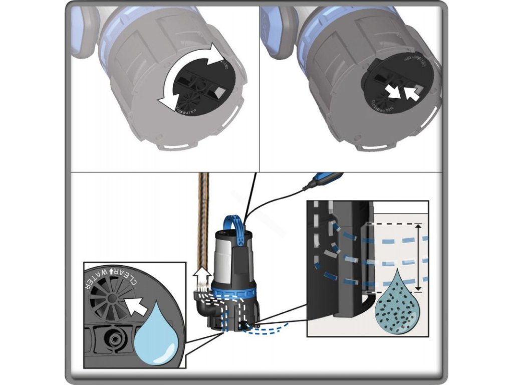 Kombinované čerpadlo na špinavú aj čistú vodu. Základňu čerpadla je možné v priebehu niekoľkých sekúnd prepnúť zo špinavej vody na čistú a následne odsať vodu až na niekoľko milimetrov. Plášť z nárazu odolného plastu, obežné koleso z norylu. Variabilne nastaviteľný plavákový spínač, ktorý zaisťuje automatické zapnutie a vypnutie v závislosti od výšky hladiny vody, zároveň chráni čerpadlo proti chodu na sucho. Sklopné držadlo na prenášanie, 10 m prípojný kábel. Na odvodnenie rovných plôch, na čerpanie vody z nádrží a cisterien.