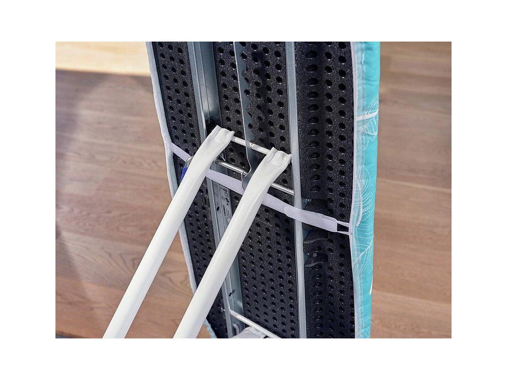 Poťah s titánovým povlakom, ktorý odráža paru a teplo a tým zaisťuje o 33% rýchlejšie žehlenie, 4 mm molitanové polstrovanie, vhodné pre žehliace dosky Air Board, sťahovanie šnúrkou s klipsom, priežný poťah pre ľahšiu aplikáciu na žehliacu dosku, rozmery až 125 x 40 cm.