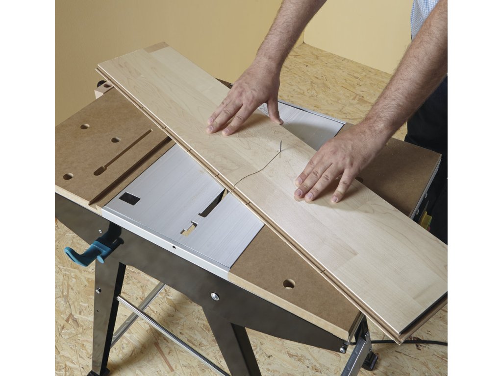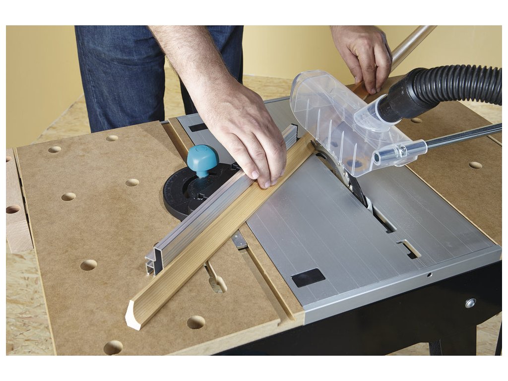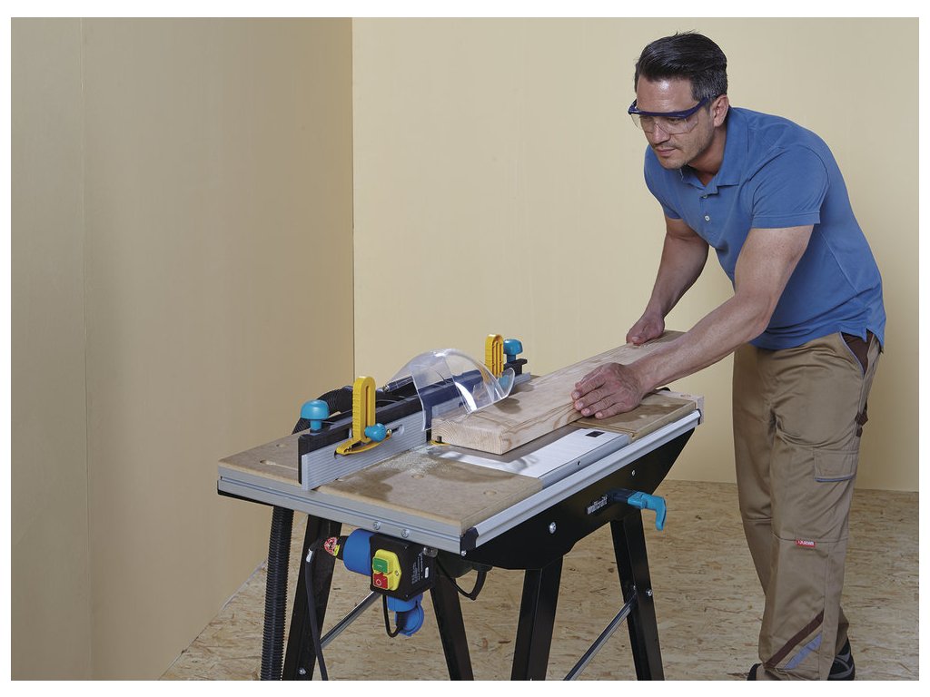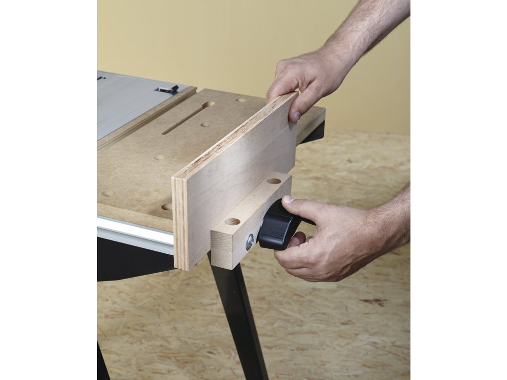 Další z řady populárních dílenských stolů německé značky Wolfcraft. Multifunkční pracovní stůl. K použití s kotoučovou pilou, přímočarou pilou i bruskou. Robustní pracovní plocha s množstvím upínacích možností. Jednoduchá manipulace díky pojezdovým kolečkům, přesto stabilní ve stacionární poloze. Ideální pro práci v různých úhlech, možnost stabilního upnutí. K dokoupení řada příslušenství Wolfcraft. Se stolem Master Cut 1500 je možné dosáhnout opravdu precizních výsledků práce. Stůl je vybaven paralelním dorazem pro stolní pily. Maximální šířka řezu je 390 mm. Vedení paralelního dorazu a vedení úhlového dorazu je oddělené, je možné tak používat ve více kombinacích. Stůl je vybaven novými odpruženými prvky úhlového dorazu. Hliníková část pracovní desky je nastavitelná. Ergonomická pracovní výška 865 mm. Zatížitelnost: 120 kg. Hmotnost 17 kg. Záruka 10 let. Rozměr pracovního stolu 500 x 780 mm Rozpětí na pracovní desce je 120 - 620 mm. Tloušťka pracovní desky 23 mm. Pracovní deska z MDF a hliníku. MDFdeska 495 x 500 mm. Hliníková deska otočná, velikost 285 x 500 mm Maximální hloubka řezu pro okružní pilu je 66 mm. Maximální šířka s dorazem 390 mm. Dvojité příčné vyztužení pro větší stabilitu. Snadný mechanismum sklápění umožní mobilitu stolu a jeho skladování. Kompatibilní s většinou značkového elektrického nářadí. Stabilní ocelová konstrukce. Technické údaje pracovní výška 865 mm max. šířka upnutí/s upínacími pracnami 120 / 620 mm plocha stolu 780 x 500 mm max. zatížení 200 kg pracovní deska: MDF, tlakově litý hliník pro kotoučovou pilu s rozpěrným klínem, do max. 70 mm hloubky řezu, 200 mm průměru řezacího listu a rozměru základní desky (viz piktogram) pro přímočarou pilu: všechny pro horní frézku s max. 230V, max. 1800 W, max. 170 x 20 mm průměru základní desky, max. 20 mm výšky základní desky a pro max. 27 mm průměr frézy šířka záběru max. 390 mm úhlový řez 0 - 180° rozměry MDF desky: 495 × 500 × 23 mm rozměry desky stroje: 285 × 500 mm Při použití rozpěrného klínu č. zboží 6903000 (do 160 mm) nebo č. zboží 6904000 (160 – 200 mm) lze používat i okružní pily bez rozpěrného klínu. včetně: 1 x úhlová zarážka 1 x podélná zarážka 1 x bezpečnostní spínač 1 x svěrák 1 x zapojovací kleště 1 x ochranný kryt 4 x plastové upínky k plochému upínání 2 x vkládací kroužky 15 a 25 mm pro hodní frézku rozměr rozložené: 940 - 640 x 865 mm rozměr složené: 640 x 1.145 x 195 mm hmotnost: 17 kg EAN:4006885690608 Kód produktu:ELN0966 Výrobca:WOLFCRAFT Technické parametry: https://youtu.be/KS6Y4JXEfnYDodatočné parametre