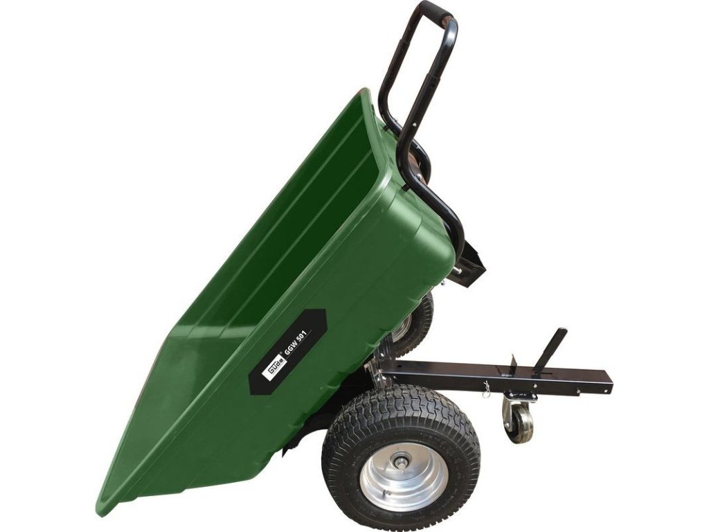 Prepravný vozík pre využitie ako ručný vozík aj ako prívesný vozík. Extra široké terénne vzduchové kolesá s guľôčkovými ložiskami. Funkcia vyklápania, oj s ťažným okom.