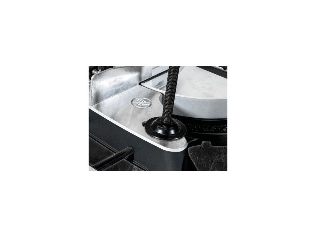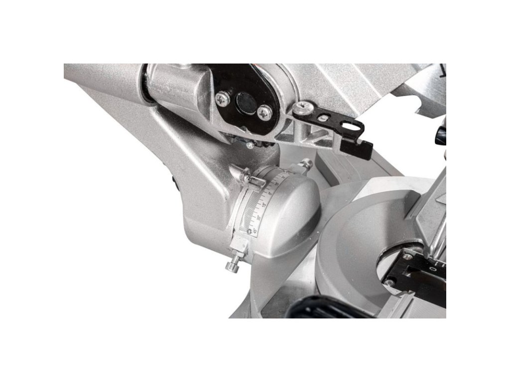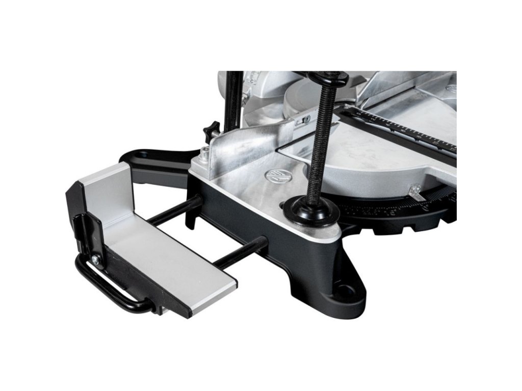 Radiálna kapovacia píla s plynule, obojstranne otočnou pílovou hlavou. Radiálne vedenie uložené v guľôčkových ložiskách, laser, svorka na uchytenie obrobku, široký pracovný stôl, vysoký hliníkový doraz, vrecko na zachytávanie triesok na zníženie tvorby prachu pri rezaní. Prípojka na odsávacie zariadenie.
