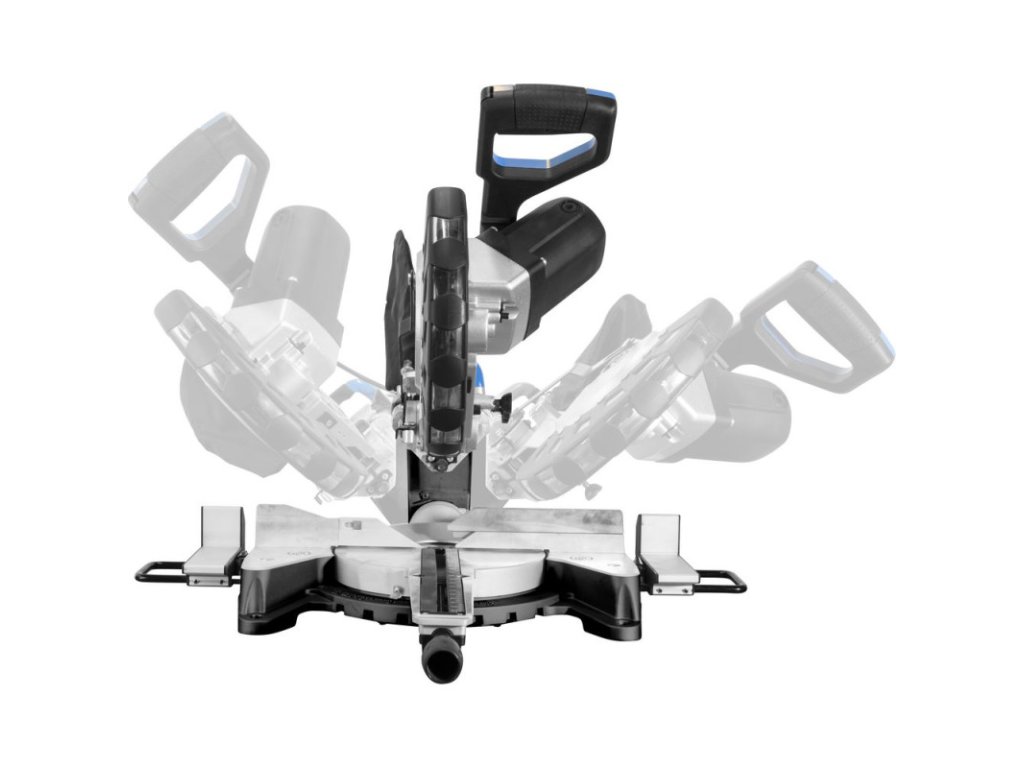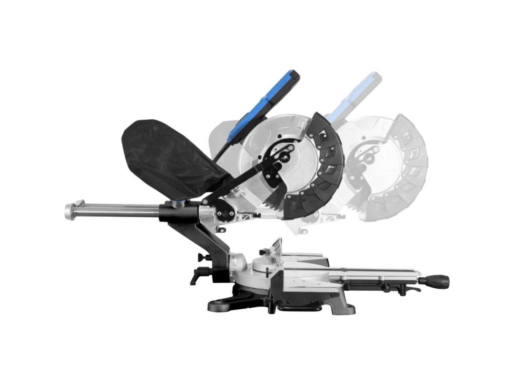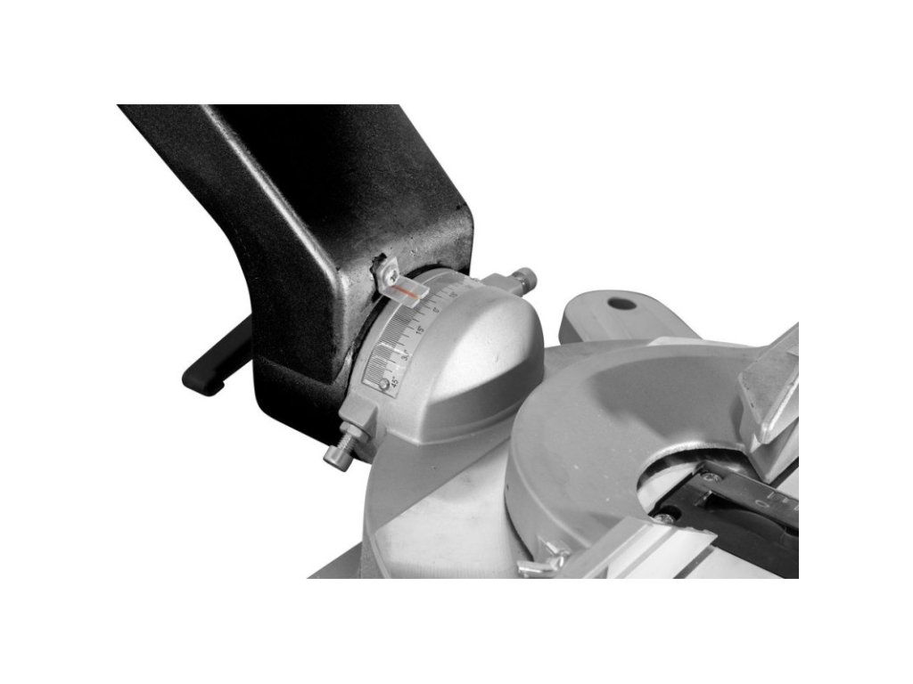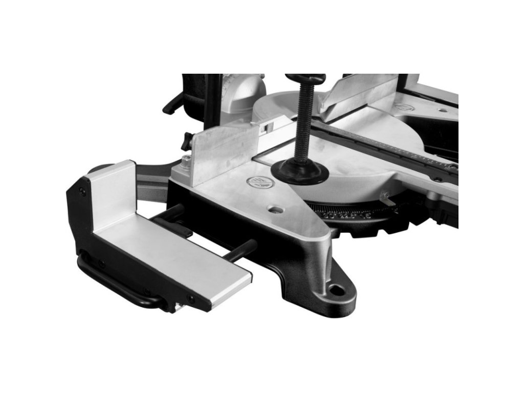 Radiálna kapovacia píla s plynule, obojstranne otočnou pílovou hlavou. Radiálne vedenie uložené v guľôčkových ložiskách, laser, svorka na uchytenie obrobku, široký pracovný stôl, vysoký hliníkový doraz, vrecko na zachytávanie triesok na zníženie tvorby prachu pri rezaní. Prípojka na odsávacie zariadenie.