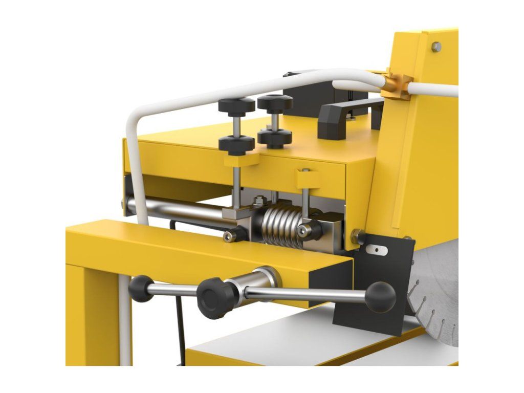 Všestranný a výkonný nástroj na presné rezanie rôznych materiálov, ako sú obrubníky a hlboké obrubníky, betónové materiály a dlažobné kocky, kamene. Hlavu možno otočiť až o 45°, umožňuje presné rezy v rôznych uhloch. Jemné nastavenie uhla rezu, pomocou excentrickej skrutky možno presne nastaviť uhol rezu. Podvozok s guľôčkovým ložiskom pre jednoduchú prepravu. Odpružené skladacie nožičky pre menší úložný priestor a zjednodušenie prepravy a skladovania. Zabudovaný osobný bezpečnostný spínač pre maximálnu bezpečnosť. Ochranný spínač proti preťaženiu a pozvoľný štart chráni stroj a zaisťuje bezpečnú prevádzku. Paralelný doraz umožňuje paralelné rezy až do šírky 210 mm. Maximálna hĺbka rezu 72 mm pri 45° a 115 mm pri 90°. Vďaka svojej robustnej konštrukcii a presným funkciám je rezačka ideálnou voľbou pre profesionálov aj domácich majstrov.