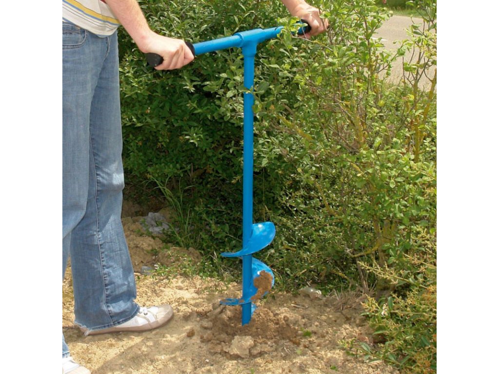 Ručný zemný vrták na osádzanie plotových stĺpikov, sadenie stromov, kríkov a podobne. Kovová T-rukoväť. Celková výška 1030 mm.