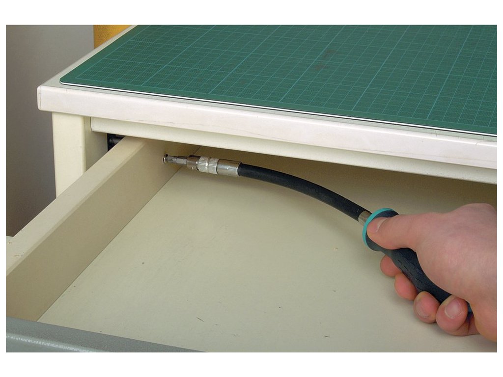 Upínač: šesťhranné uchytenie 6,3 mm (1/4 ") prevedenie: s flexibilné stopkou, s magnetickým rýchlovymeniteľnými skľučovadlom, s prídržným krúžkom pre presné vedenie ručného skrutkovača, ergonomický tvar rokojeti umožňuje vysoký prenos sily, jediný skrutkovač s ktorým sa dostanete aj za roh EAN: 4006885123601 ELN0932Dodatočné parametre