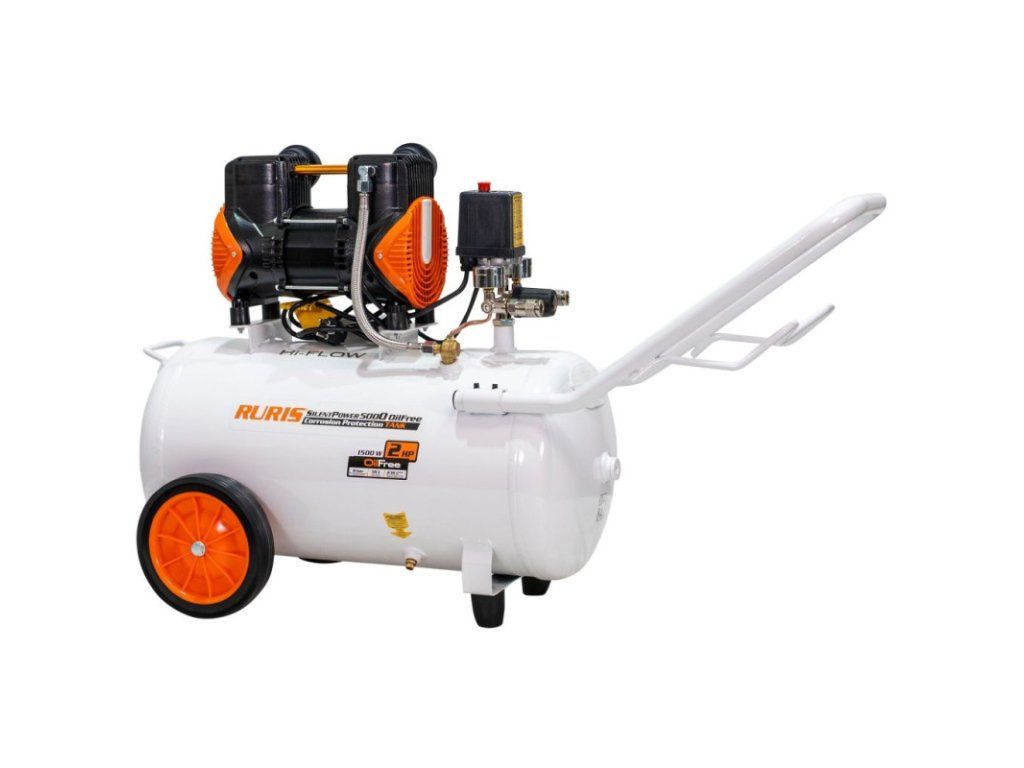 Bezolejový kompresor RURIS Silent Power 5000 je ideálnou voľbou pre prostredia, kde je nízka hlučnosť nevyhnutná, ako sú lekárske kliniky, laboratóriá, dielne na servis elektroniky, komerčné priestory alebo domácnosti. Vďaka bezolejovej technológii (nie je potrebné mazanie) tento model poskytuje čistý stlačený vzduch, vhodný pre rôzne aplikácie, bez rušenia okolitých aktivít.