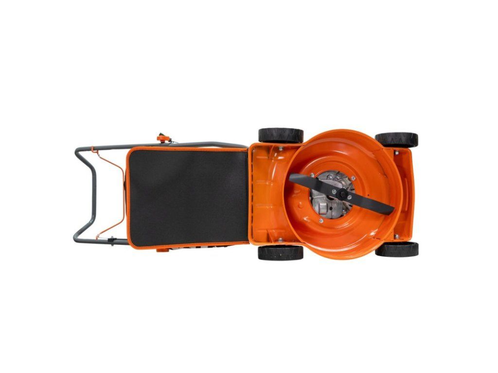 Kosačka na trávu je teda vybavená štvortaktným motorom s výkonom 3,3 HP (objem valcov 131 cm³), má pracovnú šírku 400 mm a 2 funkcie: zber a zadné vyhadzovanie.