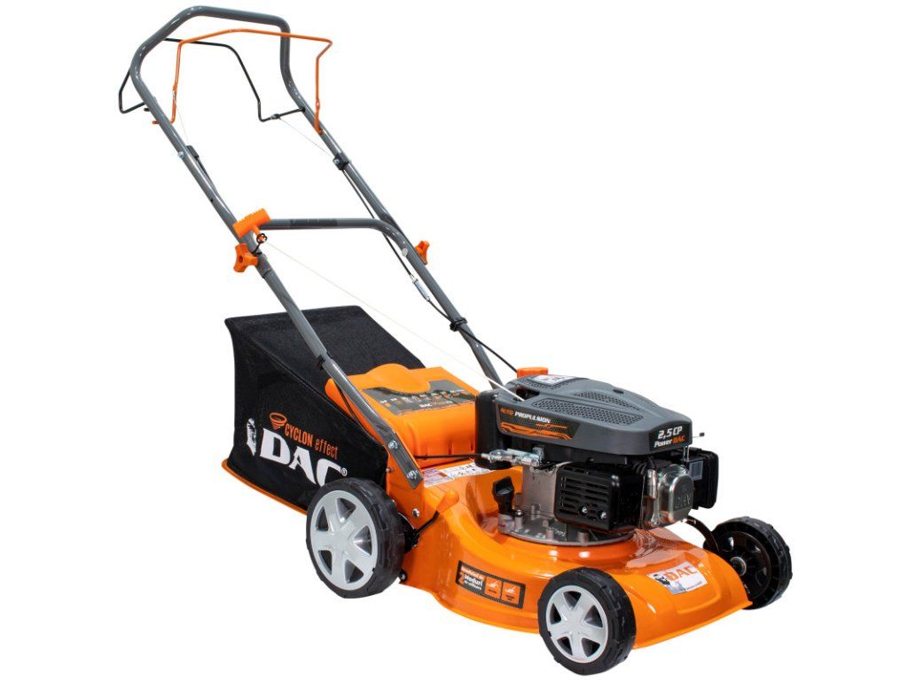Kosačka DAC 110XL vybavená 4-taktným motorom s výkonom 2,5 HP má pracovnú šírku 40 cm a je ideálna na kosenie trávy na ploche až 1300 metrov štvorcových. Dôležitým aspektom pre dosiahnutie dokonalého trávnika je výška kosenia trávy. Kosačka na trávu DAC 110XL má výšku kosenia 25-65 mm, ktorú je možné nastaviť v 5 krokoch ovládaním bočného zariadenia umiestneného na základni podvozku.