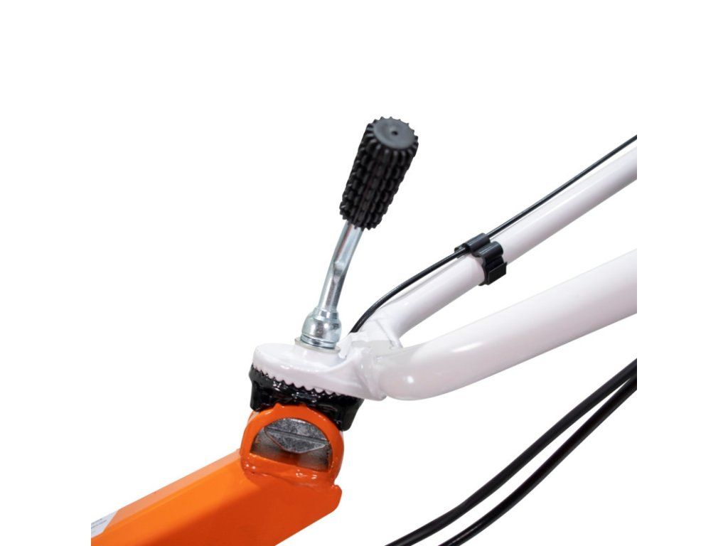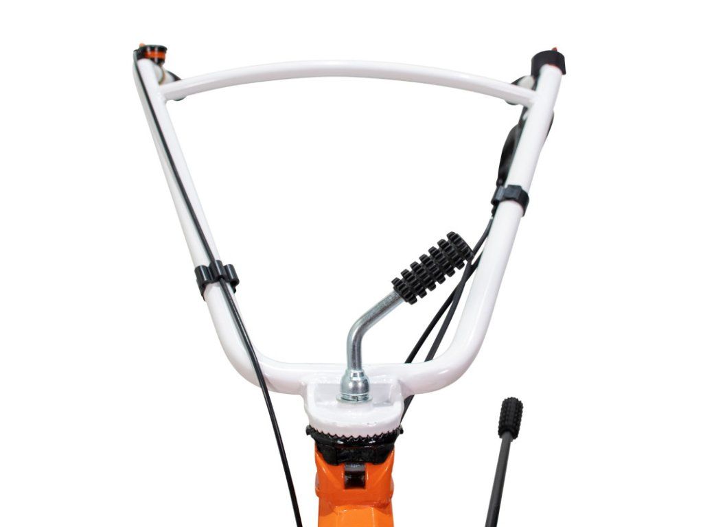 Napriek hmotnosti 80 kg sa so strojom manipuluje jednoducho. Nastaviteľné kovové riadidlá a ergonomické rukoväte tlmia vibrácie a zvyšujú komfort pri práci. Cúvací prevod umožňuje jednoduché otáčanie na konci riadkov alebo v úzkych priestoroch.