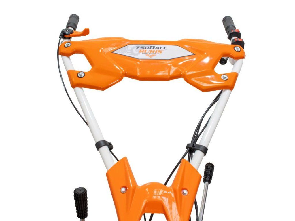 RURIS 7500FR umožňuje pripojenie širokej škály príslušenstva ako sú: jednoradlicový pluh, brány, odstraňovač zemiakov, kultivátor, snehová radlica, bubnový žací systém, sejacie stroje, kovové alebo gumené kolesá, nosný príves do 500 kg.