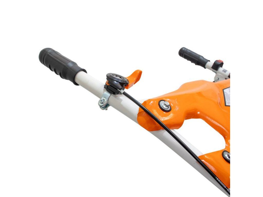 Aj keď váži 80 kg, manipulácia s ním je jednoduchá vďaka nahor nastaviteľným kovovým rohom a gumeným rukovätiam, ktoré tlmia vibrácie generované kultivátorom.
