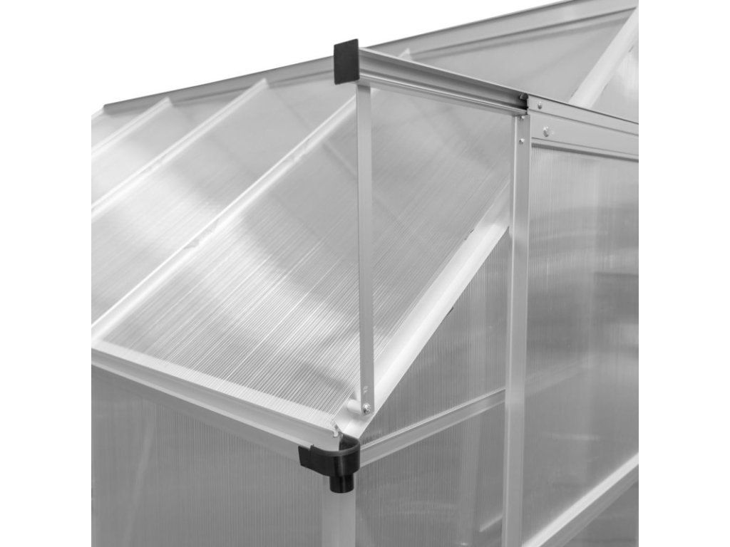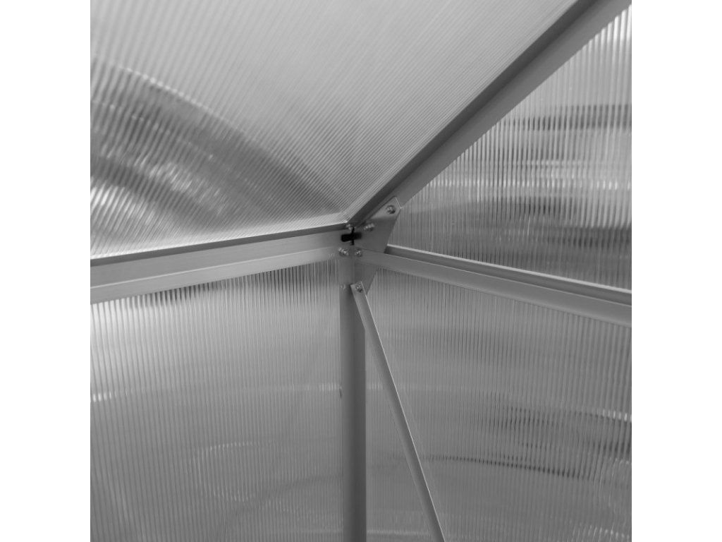 Skleník RURIS 4SEC je perfektný pre záhradkárov s malými až strednými záhradami, ktorí si chcú dopriať skoré sadenice, celoročné pestovania alebo predĺženie pestovateľskej sezóny. Vďaka transparentnému polykarbonátu udržiava optimálnu úroveň svetla pre fotosyntézu a zdravý vývoj rastlín. Rastliny môžete organizovať v radoch, na policách alebo v kvetináčoch – priestor je dostatočne flexibilný.