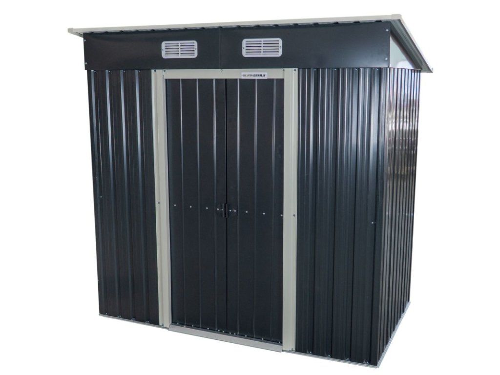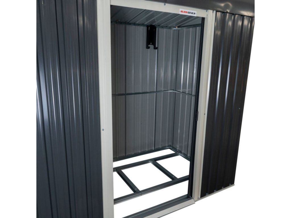 Kovový pozinkovaný záhradný domček RURIS Genius 196MH je ideálnym riešením na uskladnenie záhradného náradia a vybavenia. S plochou približne 2 m² a rozmermi 196 x 122 x 182 cm ponúka dostatok priestoru pre kosačky, bicykle alebo náradie, pričom zaberá minimum miesta v záhrade.