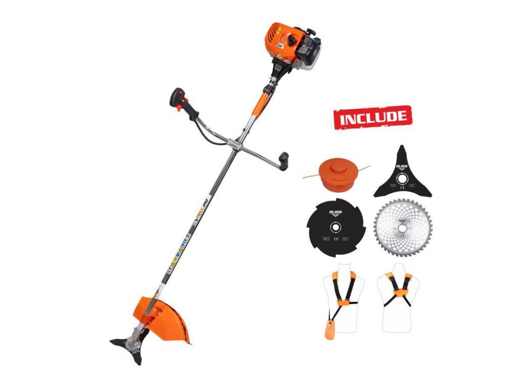 Príslušenstvo: žacia hlava, trojzub, 8 zub, 80zub vidiový, popruh