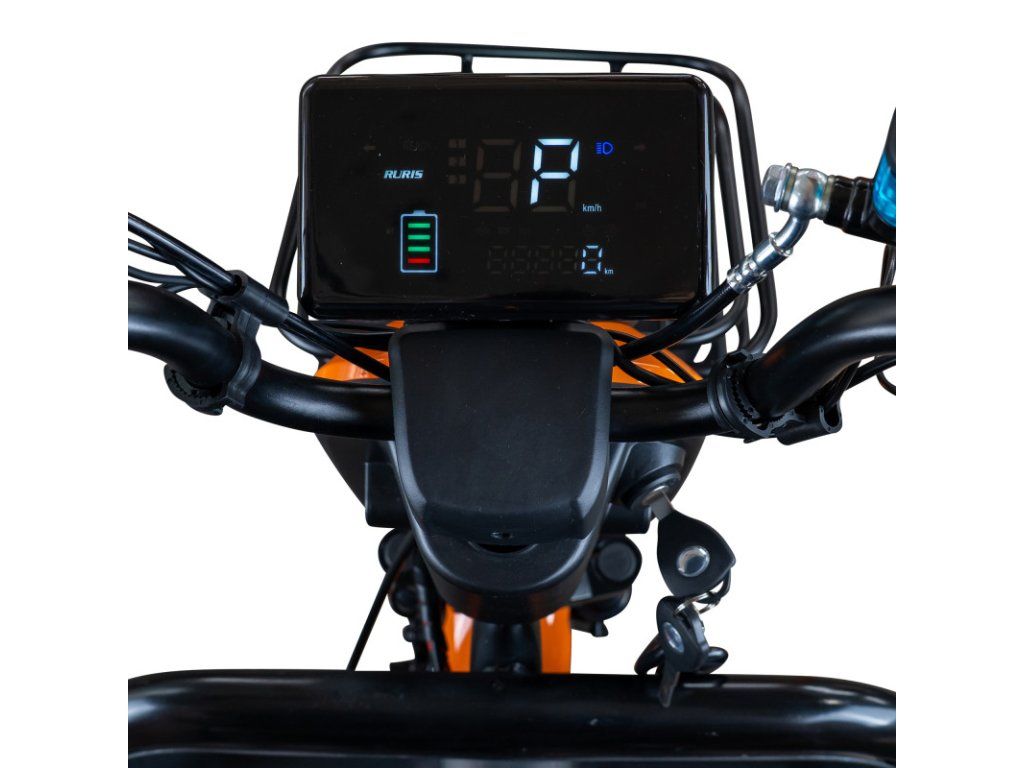 Trojkolka je vybavená extra veľkým LCD displejom, čo je veľká výhoda z hľadiska používateľského komfortu. Displej umožňuje rýchle a prehľadné čítanie všetkých potrebných údajov – rýchlosti, úrovne batérie, najazdených kilometrov a ďalších funkcií – aj za jasného denného svetla, čím prispieva k bezpečnejšiemu a intuitívnejšiemu používaniu.