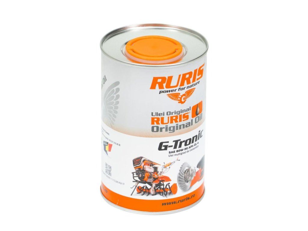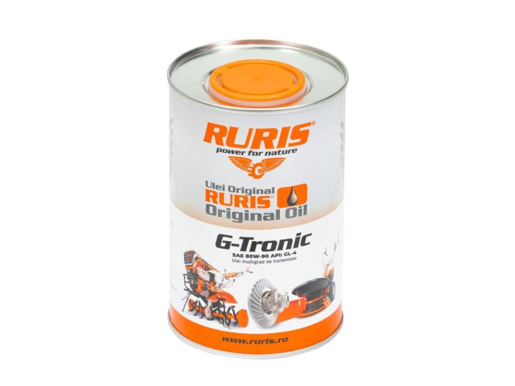 Prevodový olej RURIS G-Tronic je špecializovaný monográdny olej určený na mazanie prevodoviek pri extrémne náročných podmienkach zaťaženia a vysokých šmykových rýchlostiach. S viskóznou triedou SAE 80W-90 a certifikáciou API GL-4 zabezpečuje maximálnu ochranu ozubených prevodov motokultivátorov, motosáp a iných záhradných strojov RURIS.