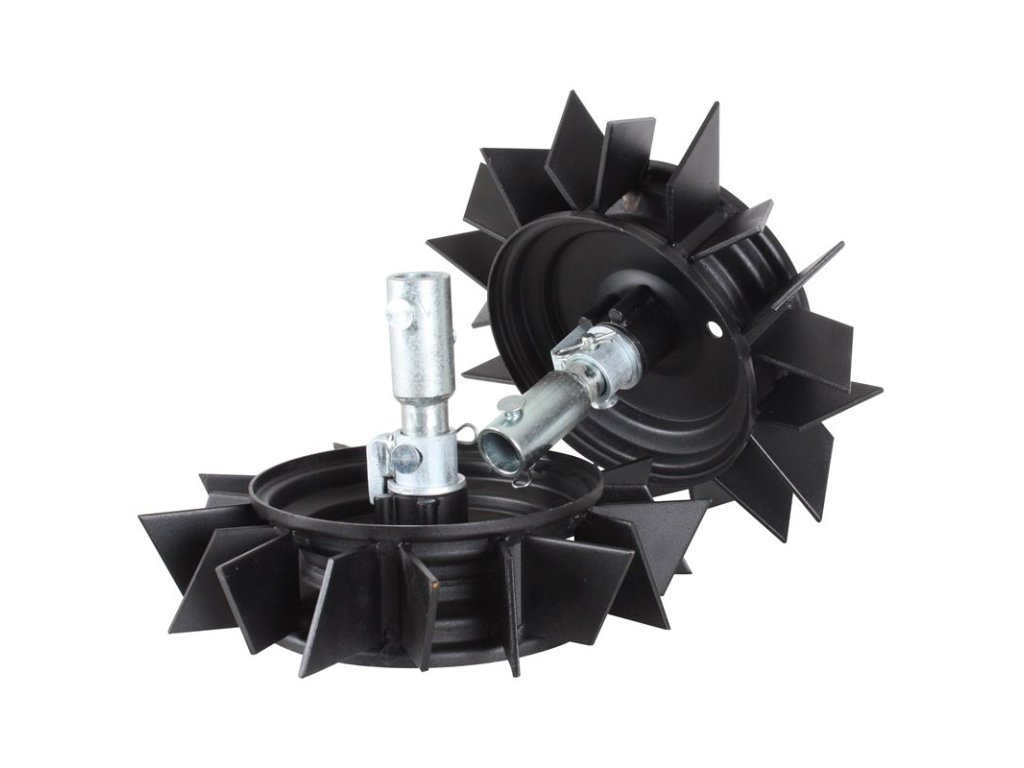 Silné a robustné lopatkové oceľové kolesá sa používajú tam, kde je zem sypká a musíte namiesto kolies jazdiť s pluhom alebo bránami. Vrátane predlžovacej trubice.Vhodné na nasledujúce modely:TV3-TV3B-TV5-TV5B-TD3-TD5-TD5B-TD5BR,Lilli 532-534-535-572,Všetky modely LX-TX + Vision 3003,Futura 2000-2001-2002,Hobby 510/610 (Pri montáži na modely Hobby 510/610 je potrebné puzdro pre montáž na hriadele (436623), pretože hriadeľ je tu o niečo užší ako na iných modeloch fréz).Dodatočné parametre