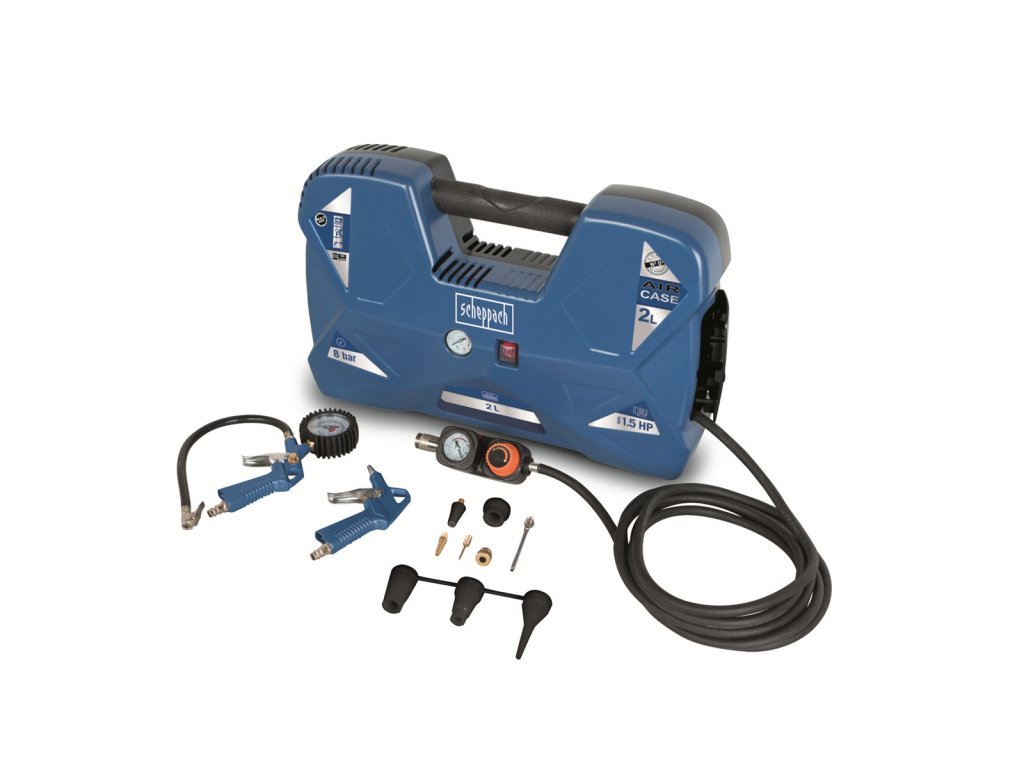 Malý, skladný, tichý, lehký, přesto ale výkonný a bohatě vybavený. Takový je tento skvělý kompresor Scheppach AIR CASE. Výborně se hodí do každé domácnosti, chaty, karavanu nebo malé dílny. Nadstandardní výbava zahrnuje vzdušník o objemu 2 l, díky kterému si dofouknete kolo ve sklepě i bez nutnosti přívodu elektřiny, 9 různých koncovek, díky kterým nafouknete vše od míče, přes pneumatiky a lehátka, až třeba po nafukovací bazén, 3 m hadici s integrovaným manometrem a ovladačem nastavení tlaku, praktickou ofukovací pistoli, integrované prostory pro uložení příslušenství i hadice, pohodlné madlo a manometr vzdušníku. Kompresor je vybavený nejmodernějším motorem s bezolejovou technologií, takže nikdy není potřeba kontrolovat hladinu oleje ani se starat o jeho stáří. Kompresor je tak vždy připravený odvést svoji práci. Jeho rozměry a nízká váha pouhých 8 kg ho rovněž předurčují k využití při stanování, kempování a jiných outdorových aktivitách. Kontaktní údaje výrobce / dovozce / zplnomocněného zástupce výrobce v EU: Scheppach GmbH Günzburger Str. 69, 89335 Ichenhausen, Germany email: service@scheppach.comDodatočné parametre
