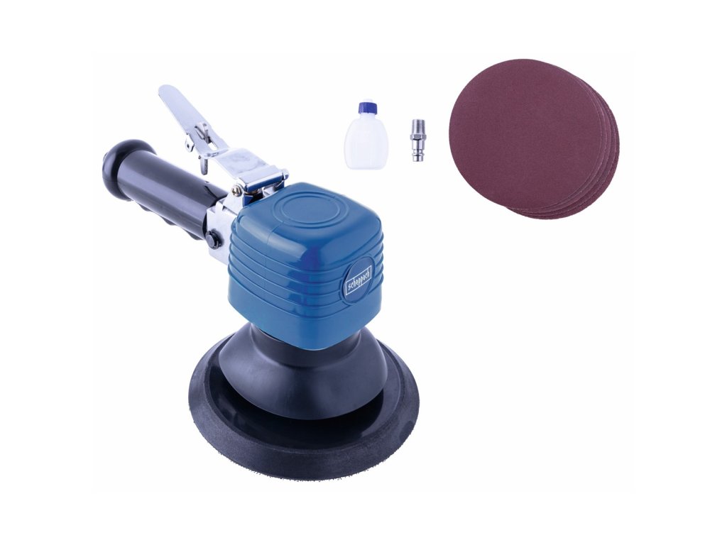 sada excentrické brusky a příslušenství skvělá pro broušení dřeva, kovů, plastů, nátěrových a spárovacích hmot a pro leštění povrchů otáčky: 10 000 ot./min. maximální tlak 6,3 bar spotřeba vzduchu 93,4 l/min. průměr kotouče 150 mm beznástrojová výměna brusného papíru díky suchému zipu příslušenství: 5 x brusný papír 150 mm, brusná podložka se suchým zipem, těsnící páska, ochranná manžeta, maznička, olej, konektor pro rychlospojku Kontaktní údaje výrobce / dovozce / zplnomocněného zástupce výrobce v EU: Scheppach GmbH Günzburger Str. 69, 89335 Ichenhausen, Germany email: service@scheppach.comDodatočné parametre