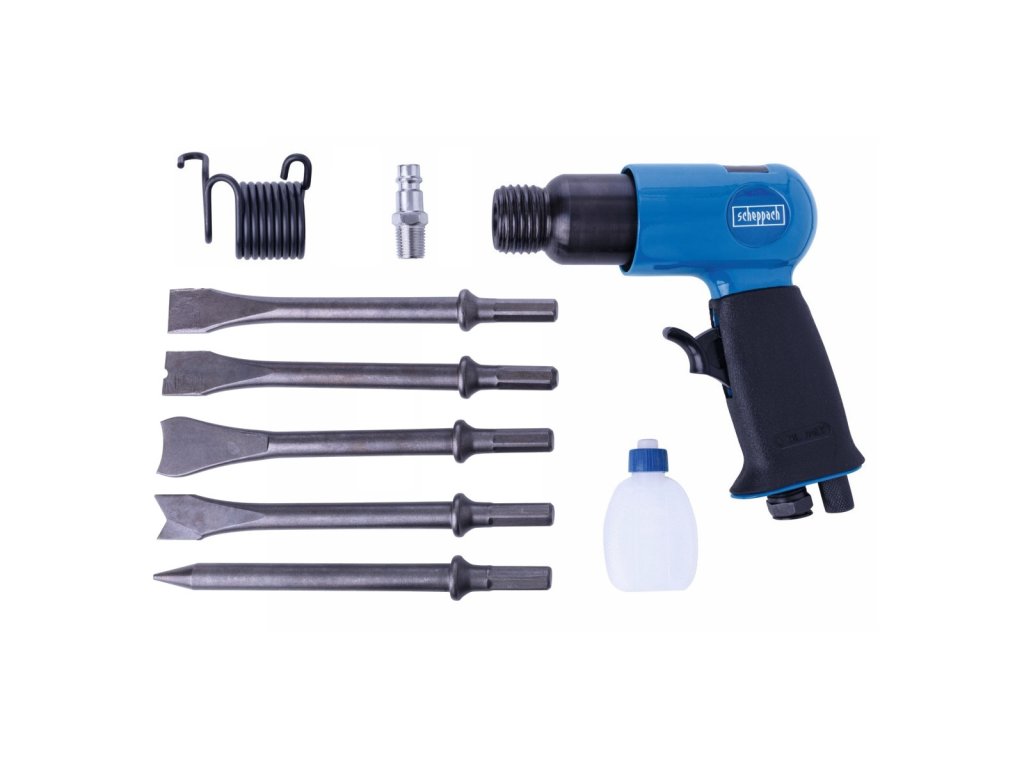 sada pneumatického kladiva a příslušenství v praktickém kufru ideální pro osekávání dlažby, tvorbu drážek, záseků a prostupů ve zdivu a kameni, oddělování plechů, odsekávání nýtů nebo matic, vyrážení čepů apod. 4500 rázů za minutu maximální tlak 6,3 bar průměrná spotřeba vzduchu 79,2 l/min. průměr stopky: 10 mm ocelové tělo, protiskluzová rukojeť příslušenství: 5 sekáčů, maznička, olej, konektor pro rychlospojku, upínací pružina Kontaktní údaje výrobce / dovozce / zplnomocněného zástupce výrobce v EU: Scheppach GmbH Günzburger Str. 69, 89335 Ichenhausen, Germany email: service@scheppach.comDodatočné parametre