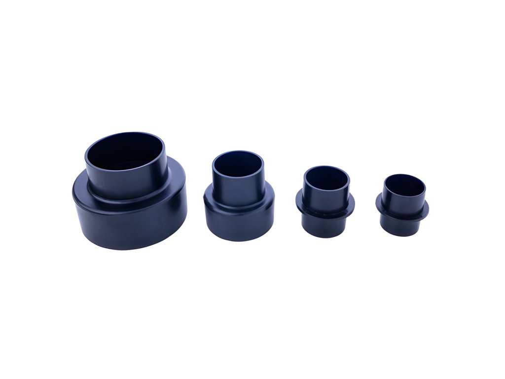 Sada 4 ks redukcí k odsavačům značky Scheppach. Adaptér 1: O A 97,2 mm / I 93,2 mm / I 63 mm, délka 70 mm Adaptér 2: O A 62 mm / I 58 mm / I 40,5 mm, délka 60 mm Adaptér 3: O A 39,4 mm / I 37 mm / A 39,4 mm / I 37 mm, délka 50 mm Adaptér 4: O A 34 mm / I 28,5 mm / A 34 mm / I 28,5 mm, délka 43 mm Kontaktní údaje výrobce / dovozce / zplnomocněného zástupce výrobce v EU: Scheppach GmbH Günzburger Str. 69, 89335 Ichenhausen, Germany email: service@scheppach.comDodatočné parametre