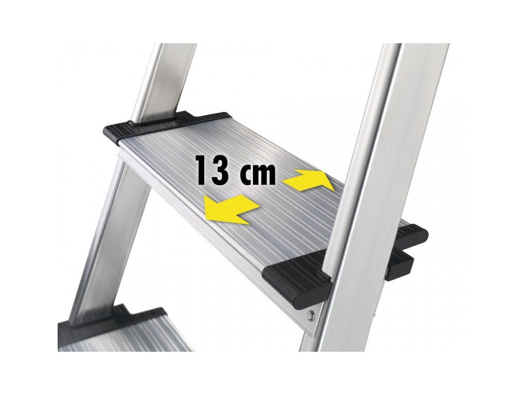 Schodíky jednostranné hliníkové Comfortline L80 s multifunkčnou poličkou a extra širokými nášľapmi. Počet nášľapov vrát. plošinky 1x6.- multifunkčná polička k odkladaniu náradia, plechoviek s farbou alebo drobných dielov- pútko na vedro- hliníkové schody s protišmykovým drážkovaním a šírkou až 13 cm- pozinkovaná oceľová plošina s protišmykovým drážkovaním- protišmyková nasadzovacia pätkaMožnosť použitia na domáce i profesionálne účely.Dodatočné parametre