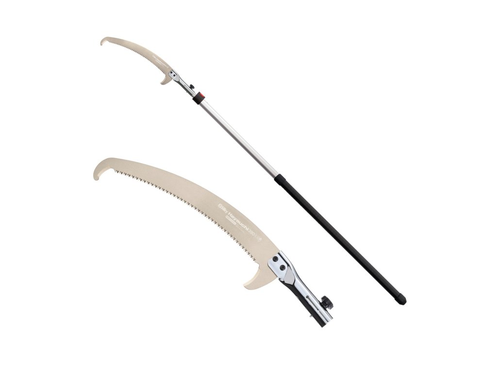 Prořezávání ve vysokých korunách stromů vyžaduje spolehlivou a všestrannou pilu, a tou je přesně Silky Hayauchi. Jedná se o lehkou teleskopickou tyčovou pilu, která se snadno používá. S její pomocí tak můžete prořezávat stromy celý den, aniž byste se nějak zásadně unavili. V plně rozloženém stavu budete schopni řezat větve až ve výšce kolem 4,5 metru. Čepel je navíc konstruována tak, aby zabírala primárně v tahu. Proto je ideální využít váhy kvalitního hliníkového těla a nechat pilu pracovat za Vás. Vlastnosti Zakřivená čepel o délce 390 mm je vyrobena ze speciální kovové slitiny, díky čemuž je odolná a neuvěřitelně pevná, a je osazena unikátními zuby 4-RETSUME. Tento typ zubů zaručuje vysosoko řeznou rychlost. Je však nutno počítat s tím, že vysoká agresivita zubů zanechává o něco hrubší povrch řezu. Dva srpky umístěné na koncích čepele spolupracují pro optimální výsledek. Horní srpek Vám pomůže udržet čepel v řezu. Mimo to ho ale můžete použít i k odřezávání malých větviček z kmene nebo k vytrhávání malých (mrtvých) větví ze stromu. Spodní srpek je pak uzpůsoben k podřezávání kůry, aby se při pádu větev neodtrhla od kmene a nepoškodila ho. Hliníková násada má oválný tvar, díky které máte velmi přesnou kontrolu nad směrem řezu, což budete potřebovat při prořezávání ve velké výšce. Navíc tento tvar poskytuje větší pevnost a tuhost po celé délce tyčové pily a minimalizuje ohýbání. Při plném rozložení násady pak pila dosahuje maximální délky 3,67 metru. Dva zajišťovací mechanismy (tlačítka a páky) společně vytvářejí nejbezpečnější a nejstabilnější zajištění preferované délky násady, přičemž nejnižší část je opatřena gumou rukojetí pro pohodlné a bezpečné uchopení i za mokra. Údržba pily Pro zachování účinnosti je nutné udržovat čepel v čistotě. Pokud je tedy ostří zalepeno pryskyřicí, či mízou, použijte k čištění olivový olej. Jedná se o účinný a ekologický způsob, jak rozpustit tyto nečisoty. Pokud pilu déle nepoužíváte, dbejte na to, aby byla vždy suchá. Praktické příslušentví Volitelně lze pilu osadit hákem HookFox, který se připevňuje pod čepel. S tímto hákem snadno ze stromu stáhnete uřezané větve, které se zakly v koruně. Lze ho navíc prakticky využít pro vytažení horolezeckého lana vysoko na strom.Dodatočné parametre
