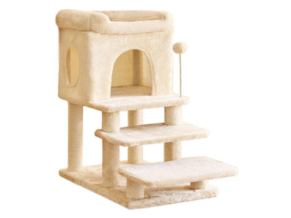 Elegantné škrabadlo s odpočívadlom a domčekom, ideálne pre náročné mačky.Dodatočné parametre