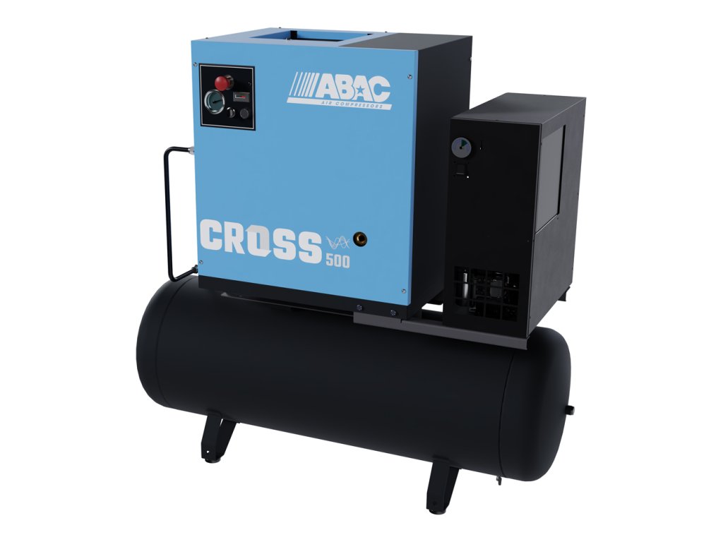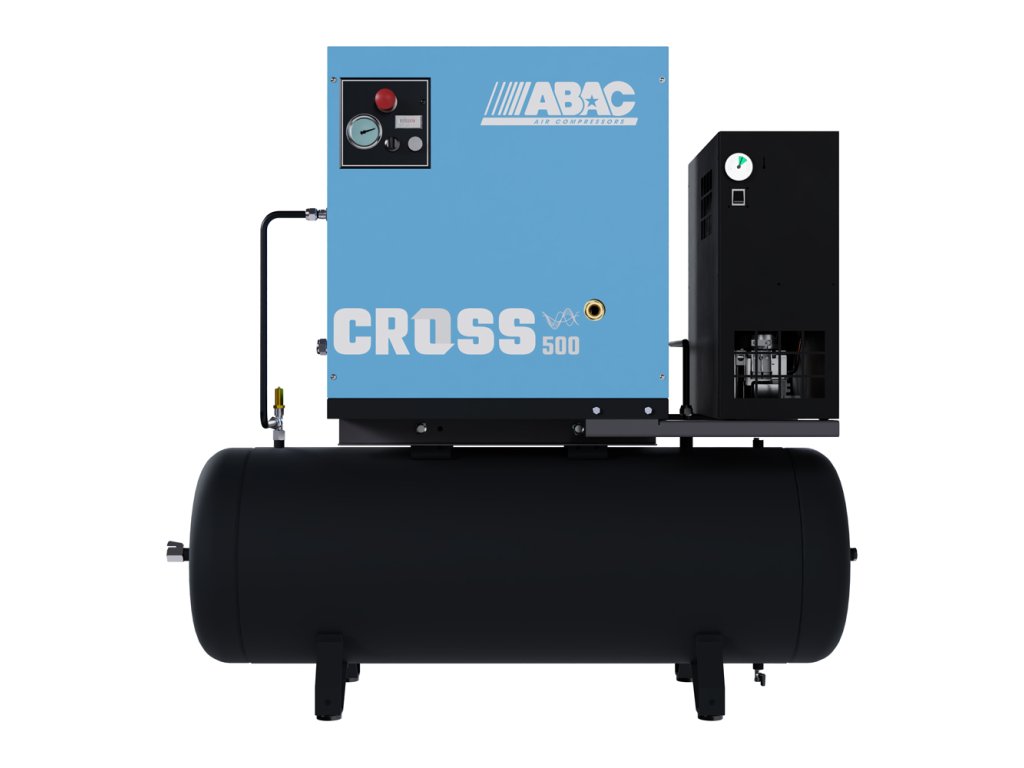 Malý skrutkový kompresor CROSS s priamym pohonom a integrovanou kondenzačnou sušičkou ponúka maximálnu efektivitu stláčania vzduchu a až o 25 percent nižšiu spotrebu energie oproti piestovým kompresorom. Vďaka kombinácii vzdušníka a sušičky je ideálnou voľbou pre aplikácie, kde je požadovaná vysoká kvalita vzduchu bez vlhkosti.
