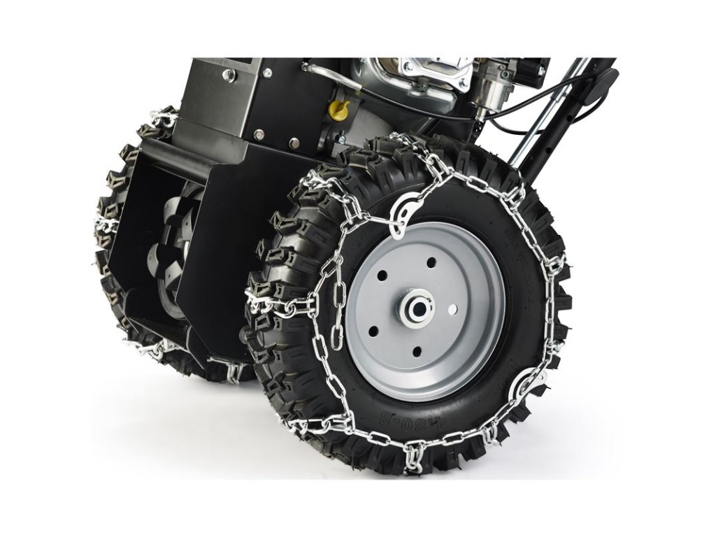 Sada snehových reťazí 4,80x8 z ocele pre dve kolesá. Horná strana reťazí je v tvare V, čo poskytuje extra dobrú priľnavosť. So snehovými reťazami sa dosiahne mimoriadne dobrá priľnavosť k zemi, keď je na vozovke sneh alebo ľad.Vhodné pre modely: Combi 800, Pro Trac 750.Dodatočné parametre