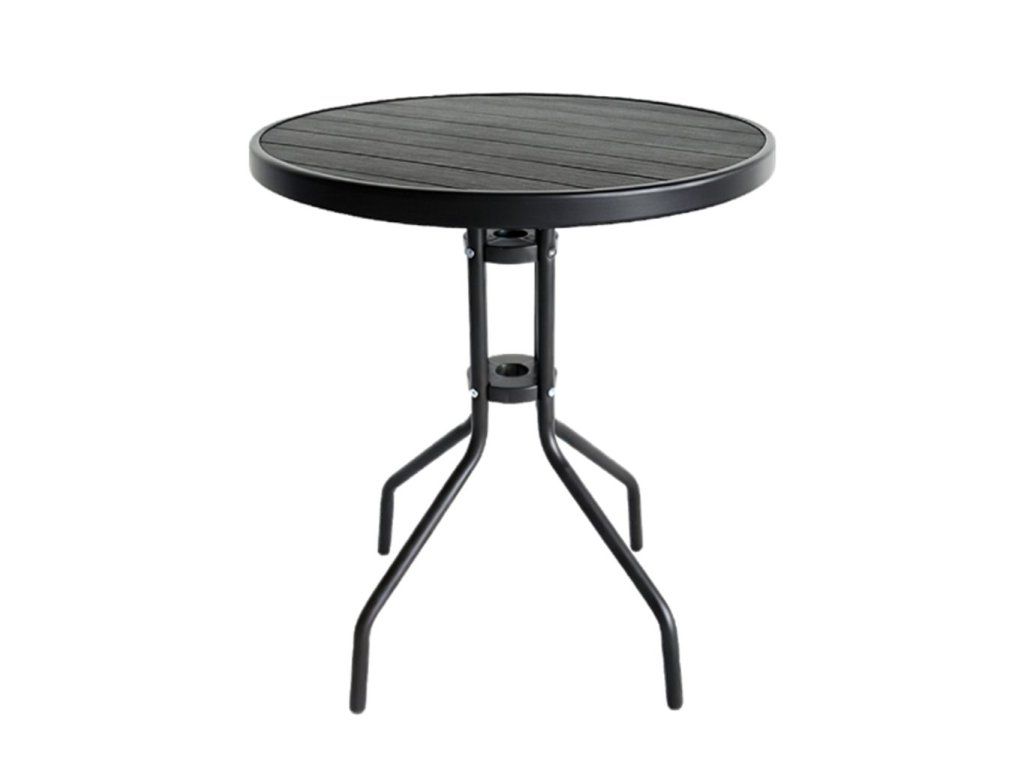 Záhradný stôl HECHT RIVA s rozmermi O 60 × 70 cm s kovovým rámom a doskou z plastu s dreveným vzhľadom.Dodatočné parametre