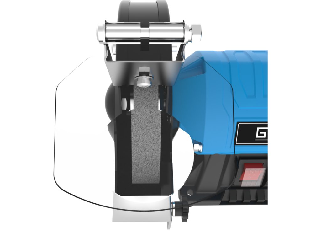 Stolová dvojkotúčová brúska s ochrannými krytmi proti iskrám, stabilná základňa, osi uložené v guľôčkových ložiskách, kondenzátorový motor, chod bez vibrácií. Polohovateľné pracovné opierky, brúsny kotúč na hrubé a jemné brúsenie.