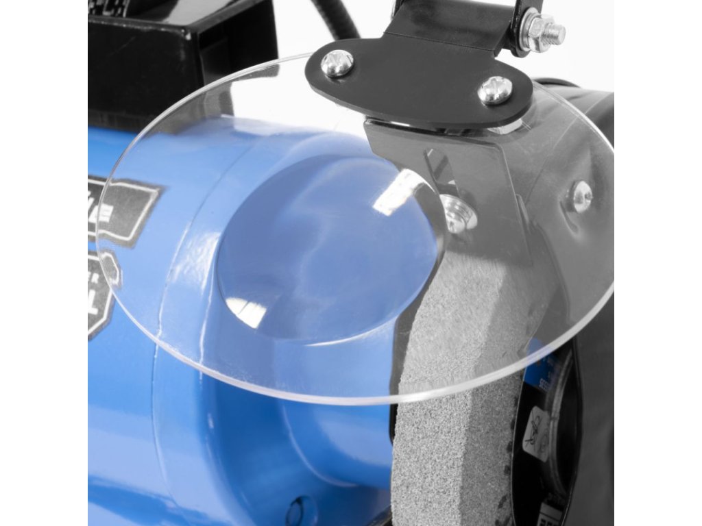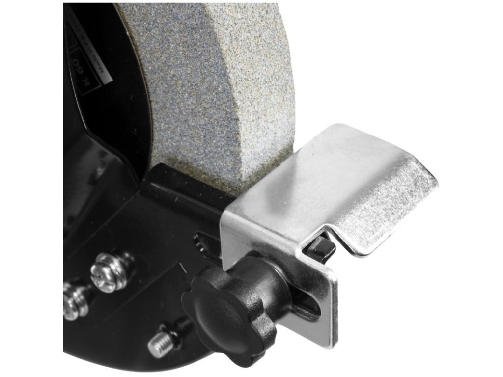 Stolová brúska so stabilnou základňou, brúsne osky v guľôčkových ložiskách, indukčný motor, chod s nízkymi vibráciami, nastaviteľné pracovné opierky, nastaviteľný ochranný kryt proti iskrám. LED pracovné svetlo, 2 ochranné kryty (1x s lupou), zásuvka, orovnávač brúsnych kotúčov. Hrubý a jemný brúsny kotúč s adaptérom 12,7 mm.
