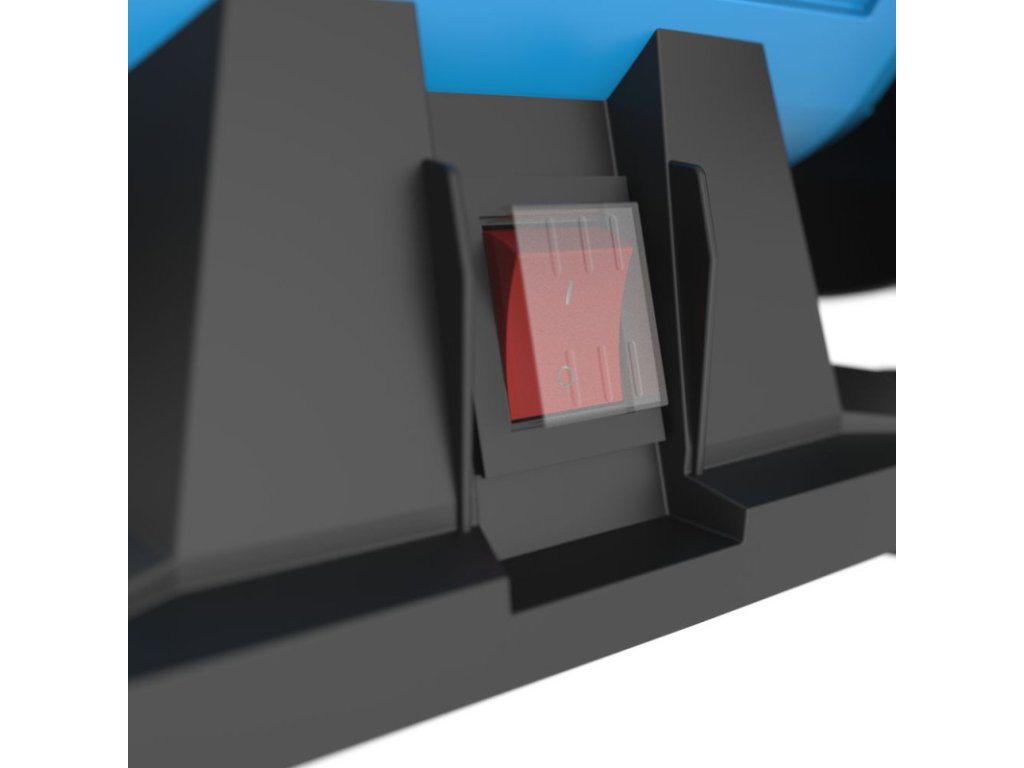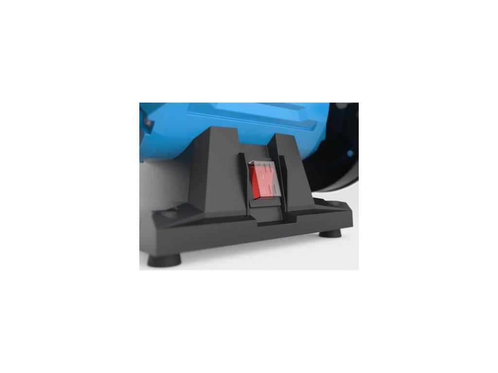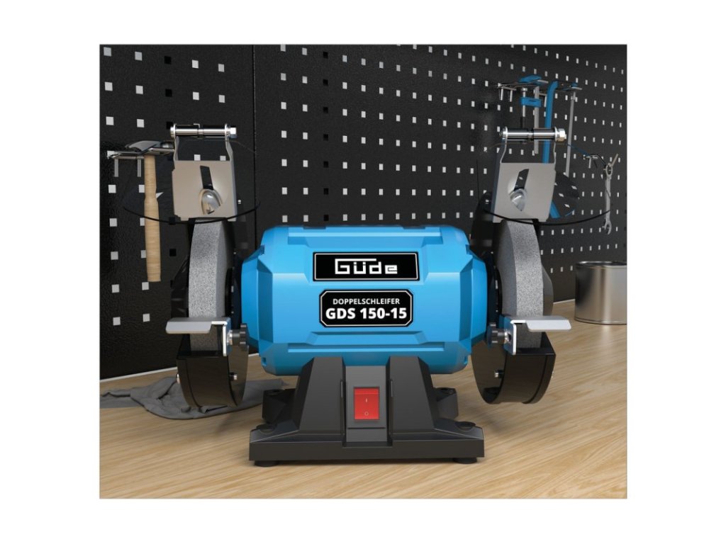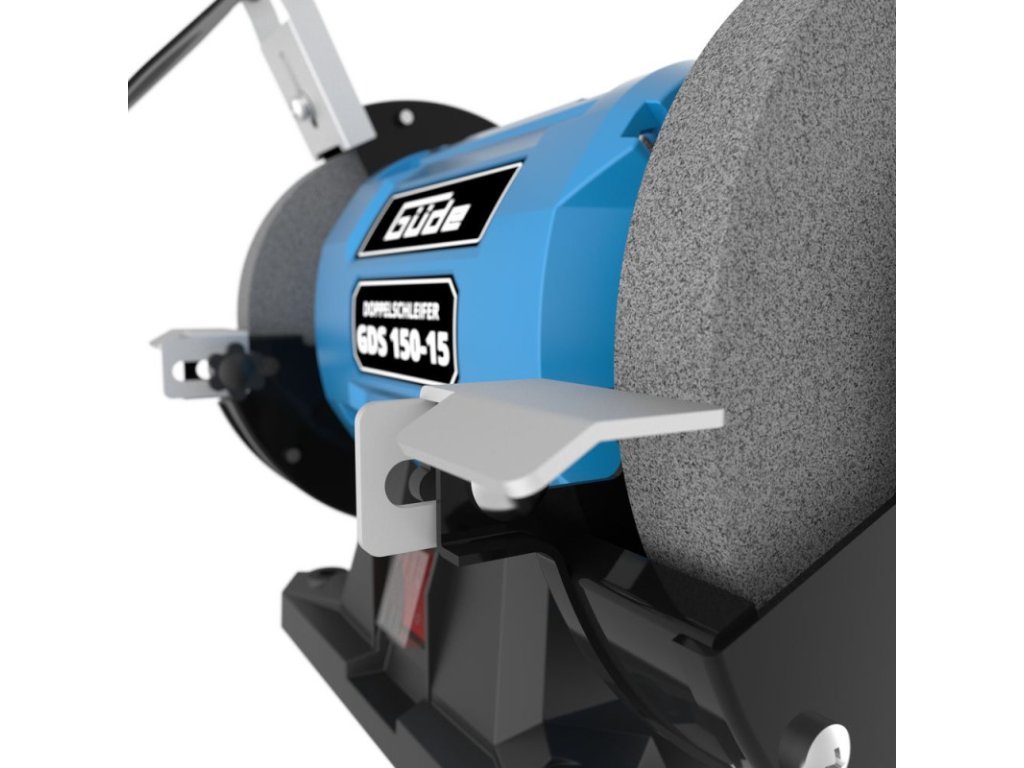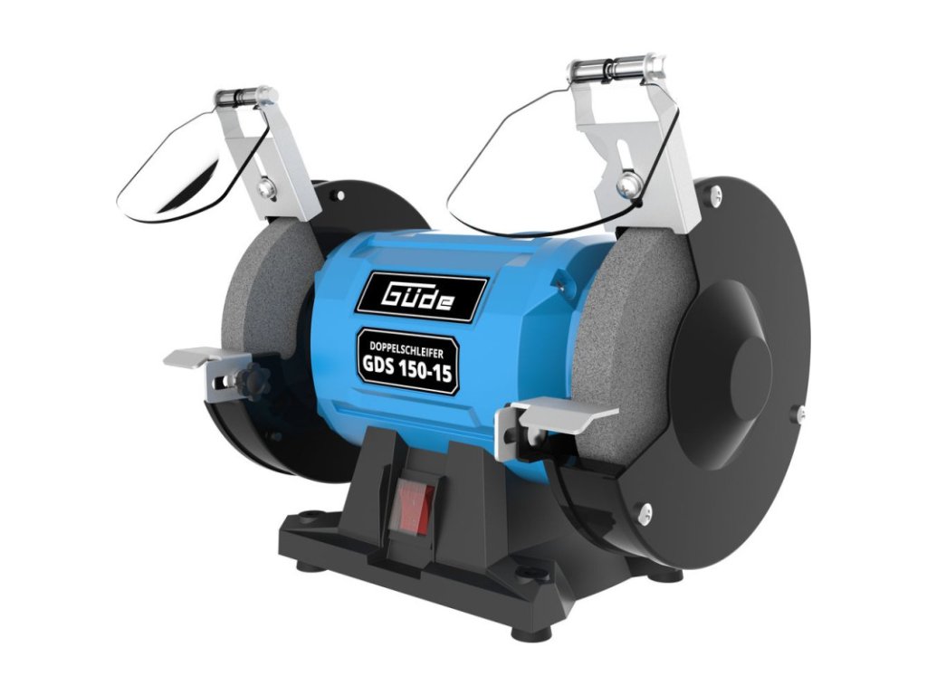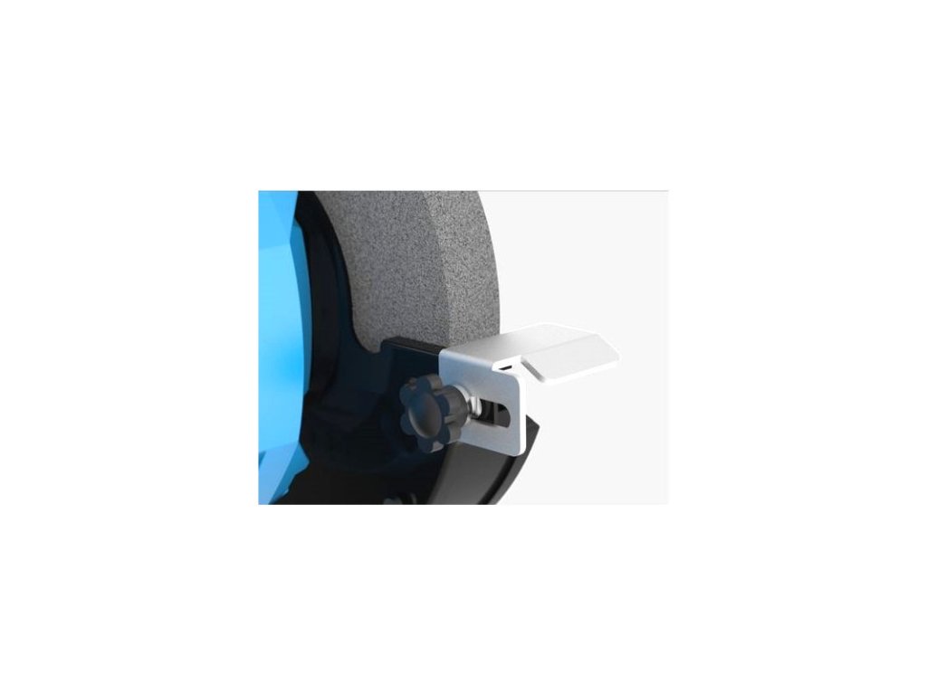 Stolová dvojkotúčová brúska s ochrannými krytmi proti iskrám, stabilná základňa, osi uložené v guľôčkových ložiskách, kondenzátorový motor, chod bez vibrácií. Polohovateľné pracovné opierky, brúsny kotúč na hrubé a jemné brúsenie.