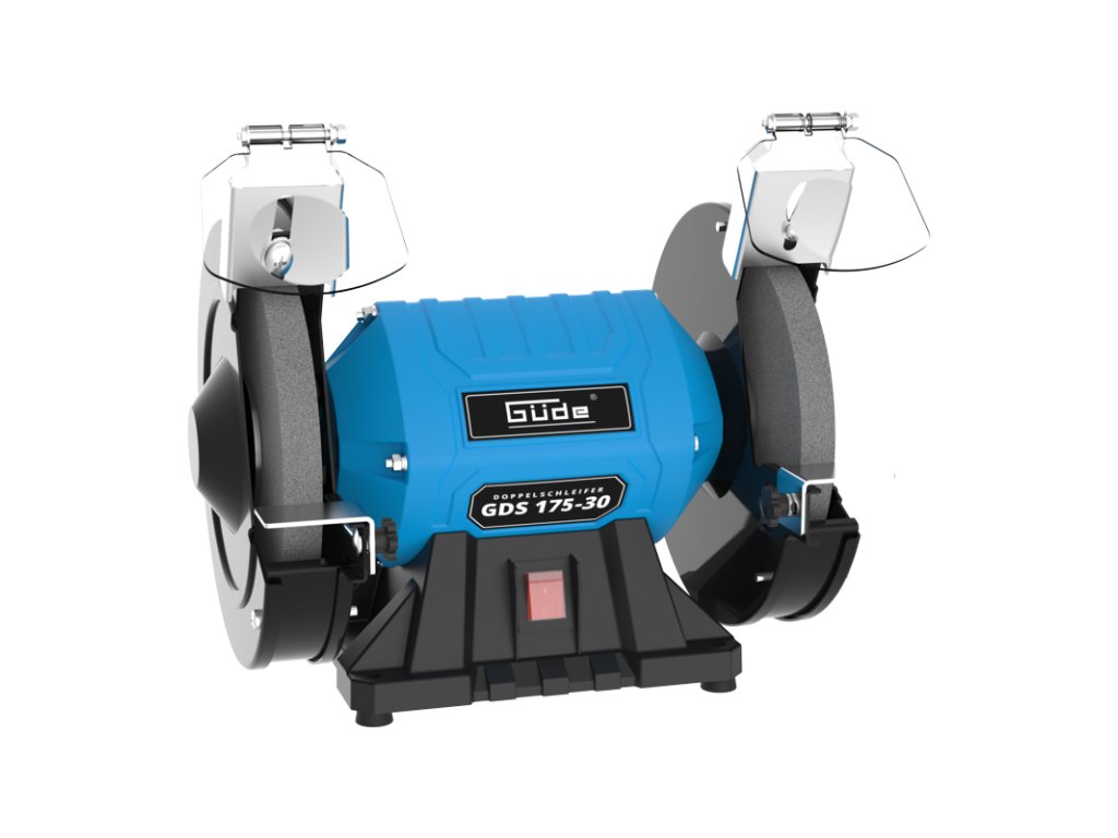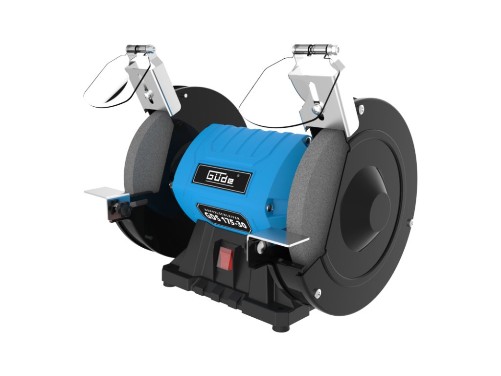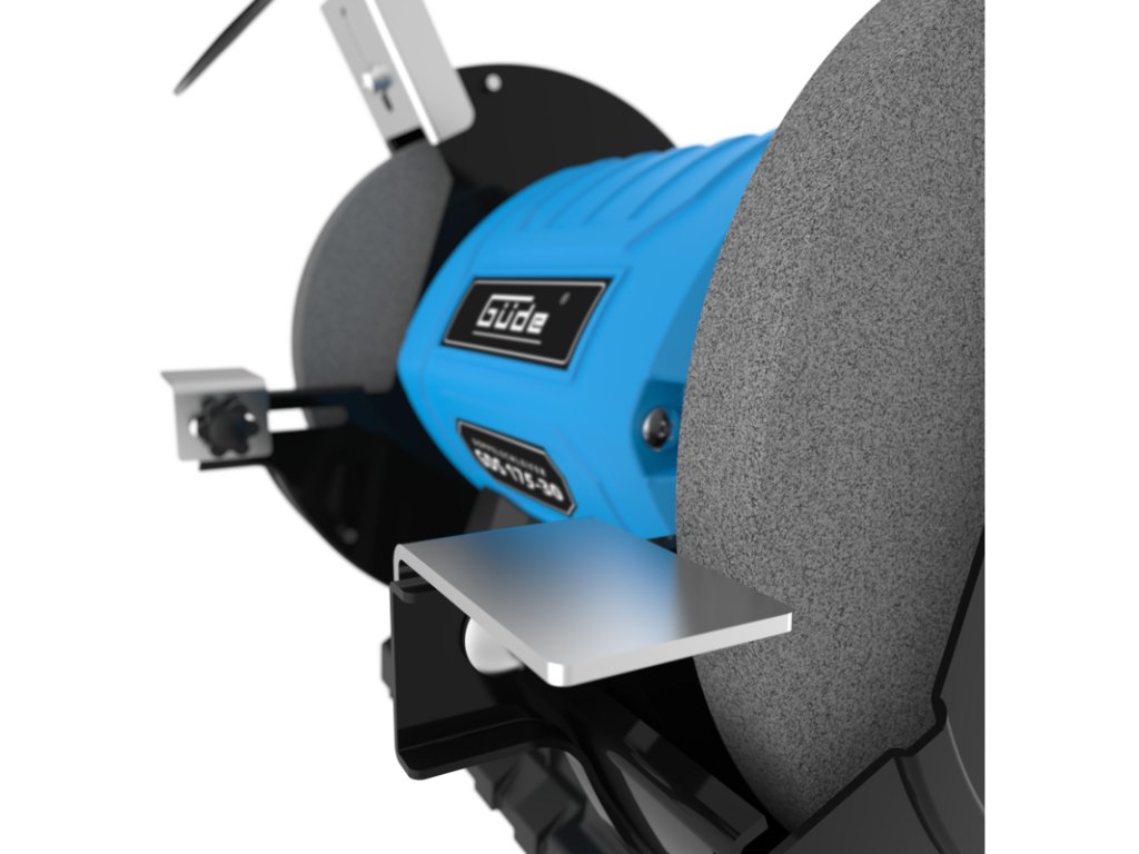 Stolová dvojkotúčová brúska s ochrannými krytmi proti iskrám s možnosťou nastavenia, stabilná základňa, osi uložené v guľôčkových ložiskách, kondenzátorový motor, chod bez vibrácií. Polohovateľné pracovné opierky, brúsny kotúč na hrubé a jemné brúsenie s adaptérom 16 mm.