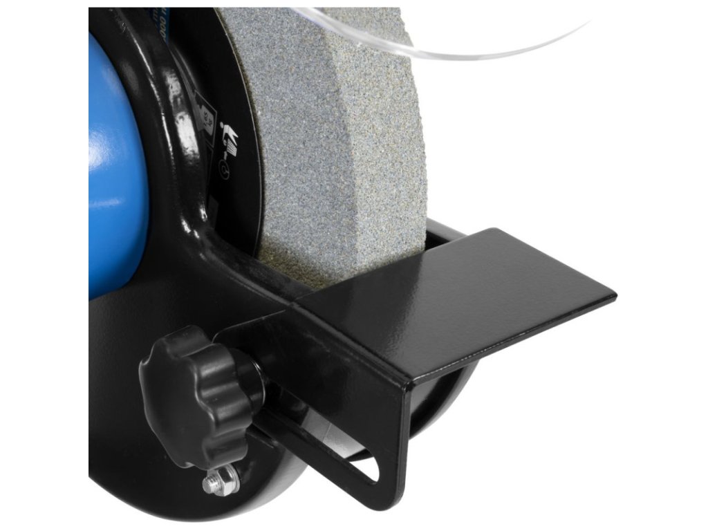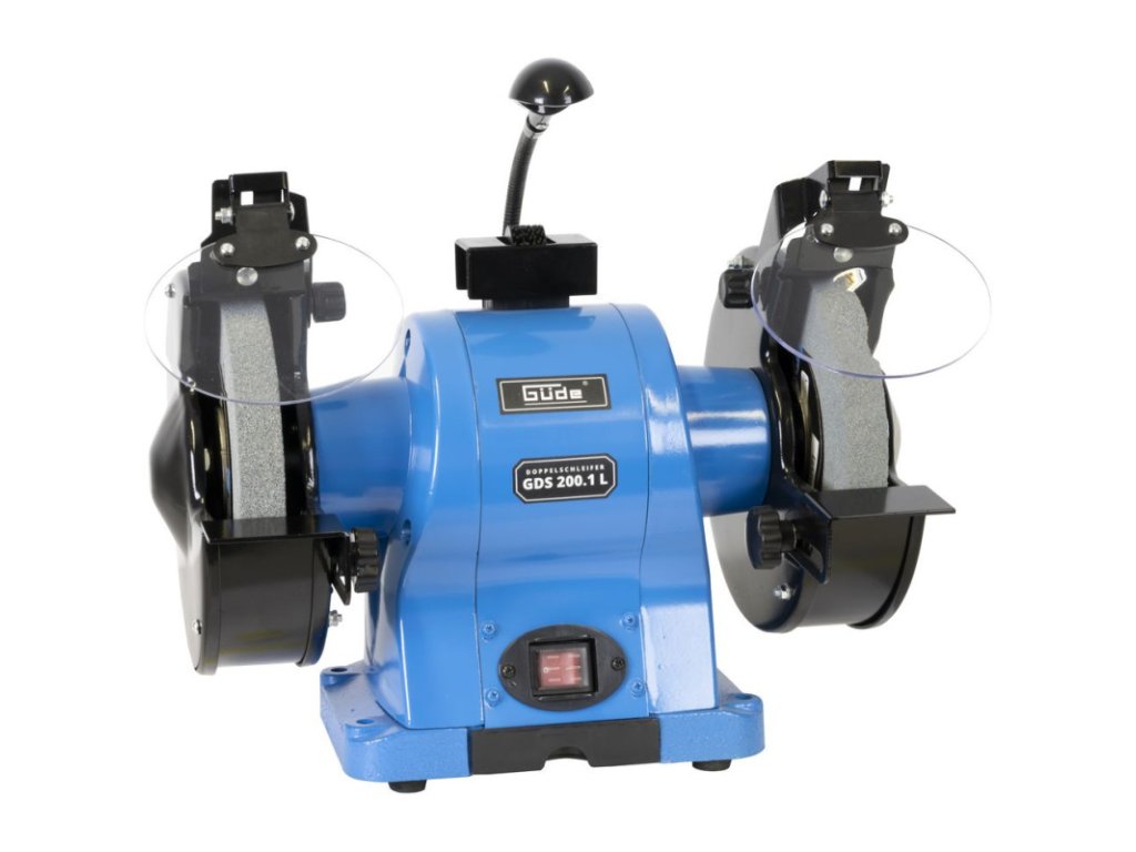 Stolová brúska so stabilnou základňou, osi uložené v guľôčkových ložiskách, indukčný motor, chod bez vibrácií, polohovateľné pracovné opierky. Nastaviteľné ochranné zariadenie proti iskrám. Pracovné LED svetlo, zásuvka, 2 ochranné sklá (1x s lupou). Zarovnávač brúsnych kotúčov.