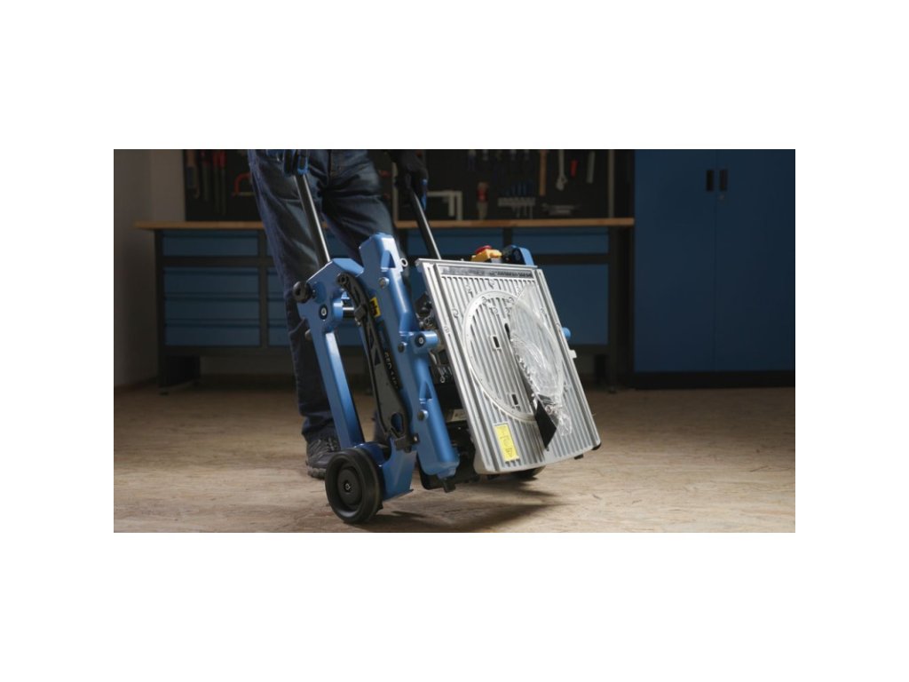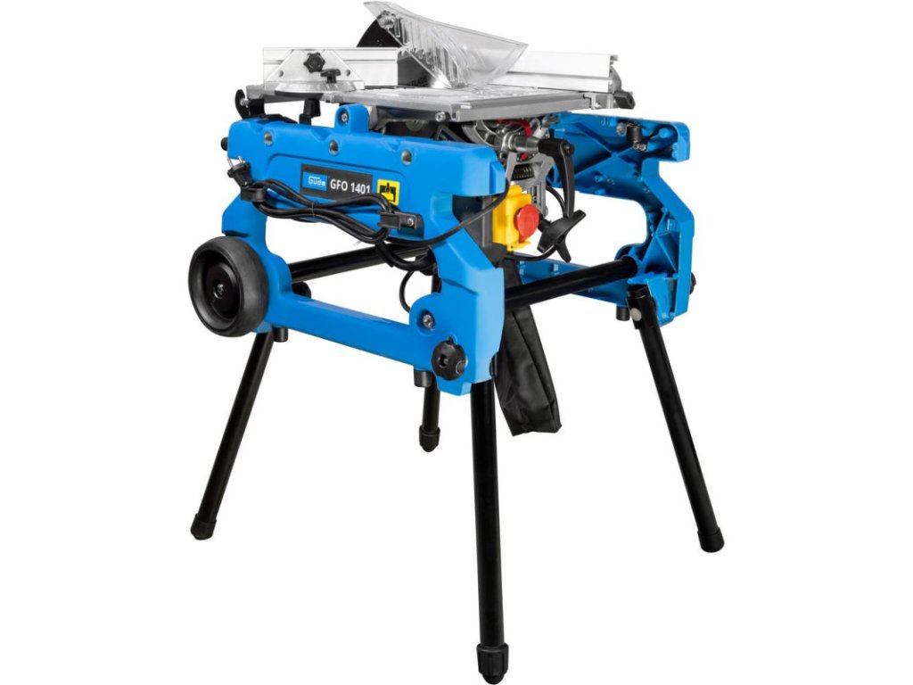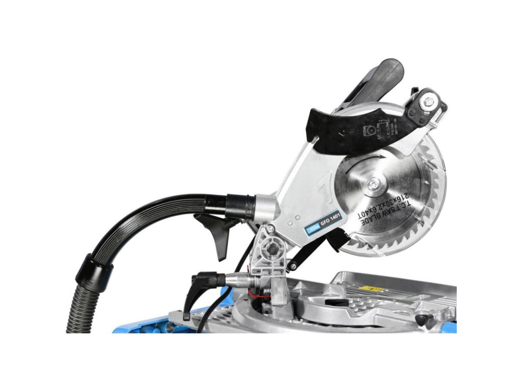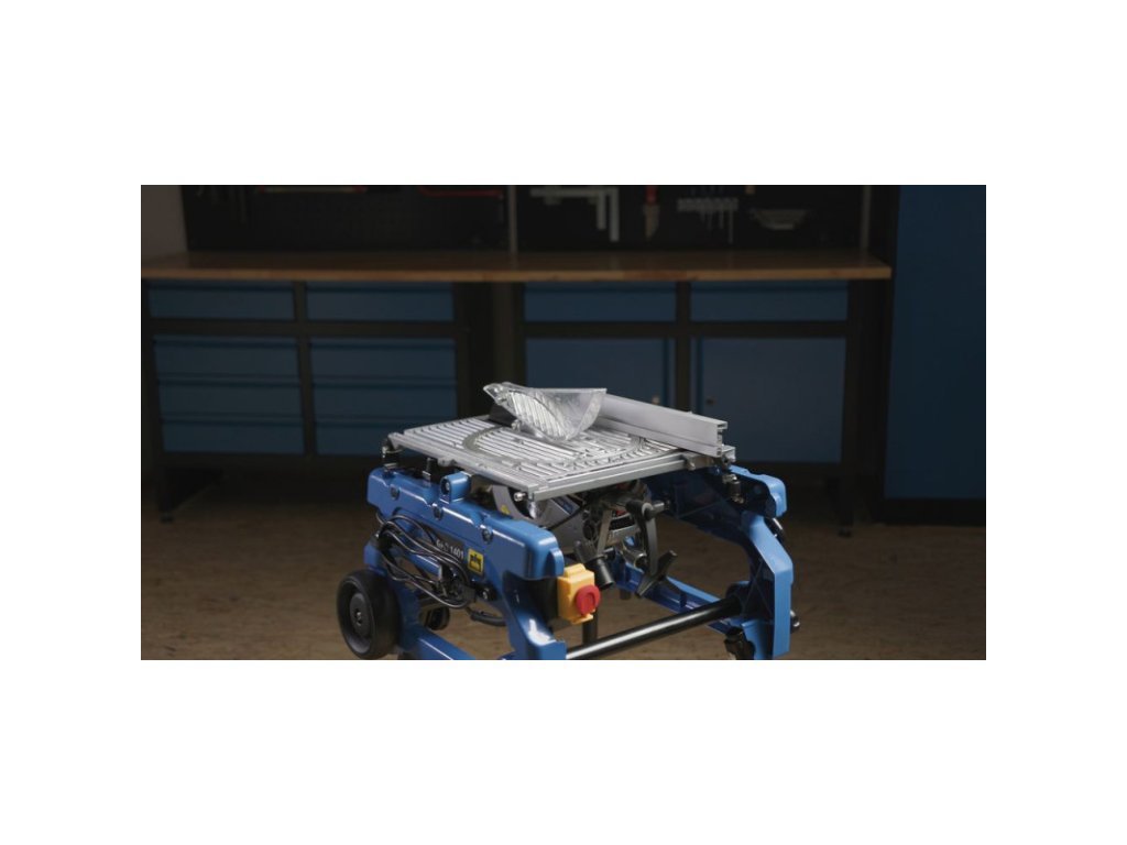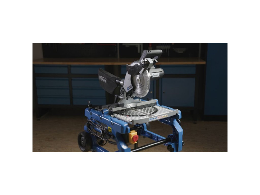 Stolová píla s jednoduchou zmenou na pokosovú pílu pretočením stola do protiľahlej polohy, plynule otočná o 180° pomocou upínacej páky. Otočný stôl vyrobený z tlakovo liateho hliníka, paralelný a úkosový doraz, pripojenie pre odsávací systém, ochranný kryt pílového kotúča. Zberné vrecko na prach, sklopné nohy pre jednoduchú prepravu, pílový kotúč HM.