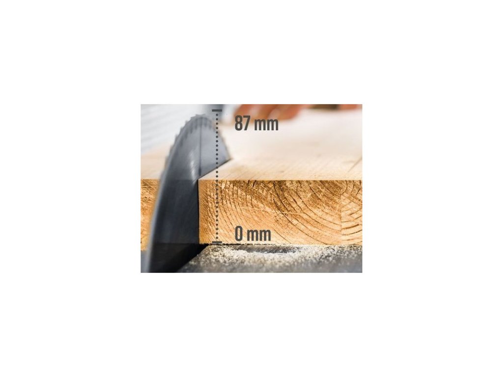 Stolová kotúčová píla s pracovným stolom z oceľového plechu, plastový kryt, podstavec z ocele. Dva rozšírenia, zošikmený doraz, paralelný doraz, posuvná tyč s držiakom, dorazová lišta s milimetrovou stupnicou. Možnosť nastavenia výšky s nastavením zošikmenia pomocou kľuky. Zariadenie na navinutie napájacieho kábla, prípravok na uloženie paralelného dorazu. Pripojenie na odsávacie zariadenie. Vyhotovená podľa najnovších bezpečnostných noriem. Vrátane 1 ks pílového kotúča HM.