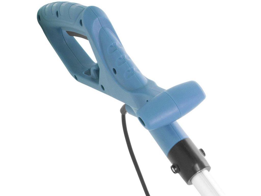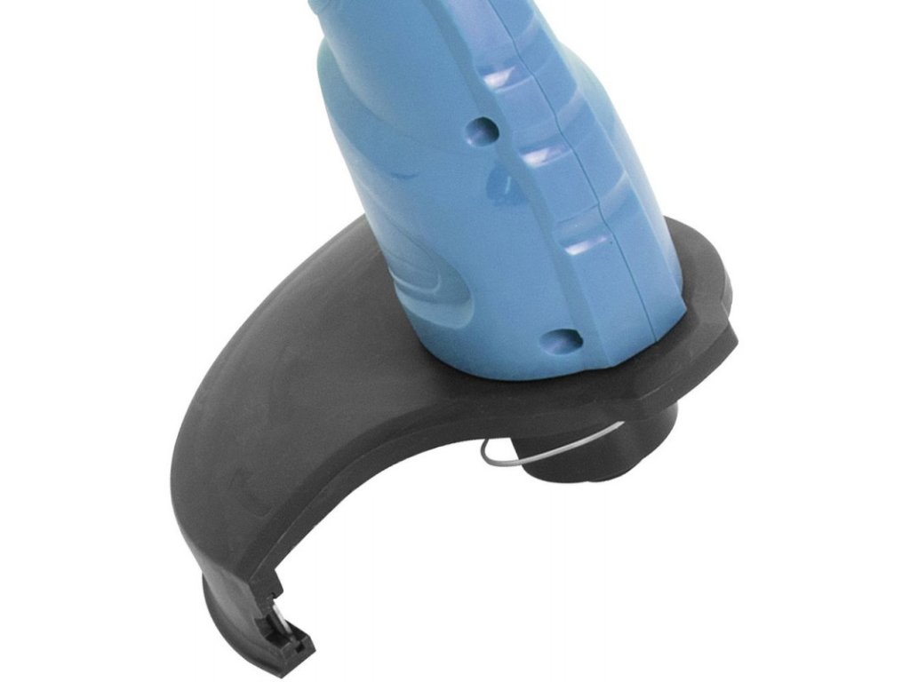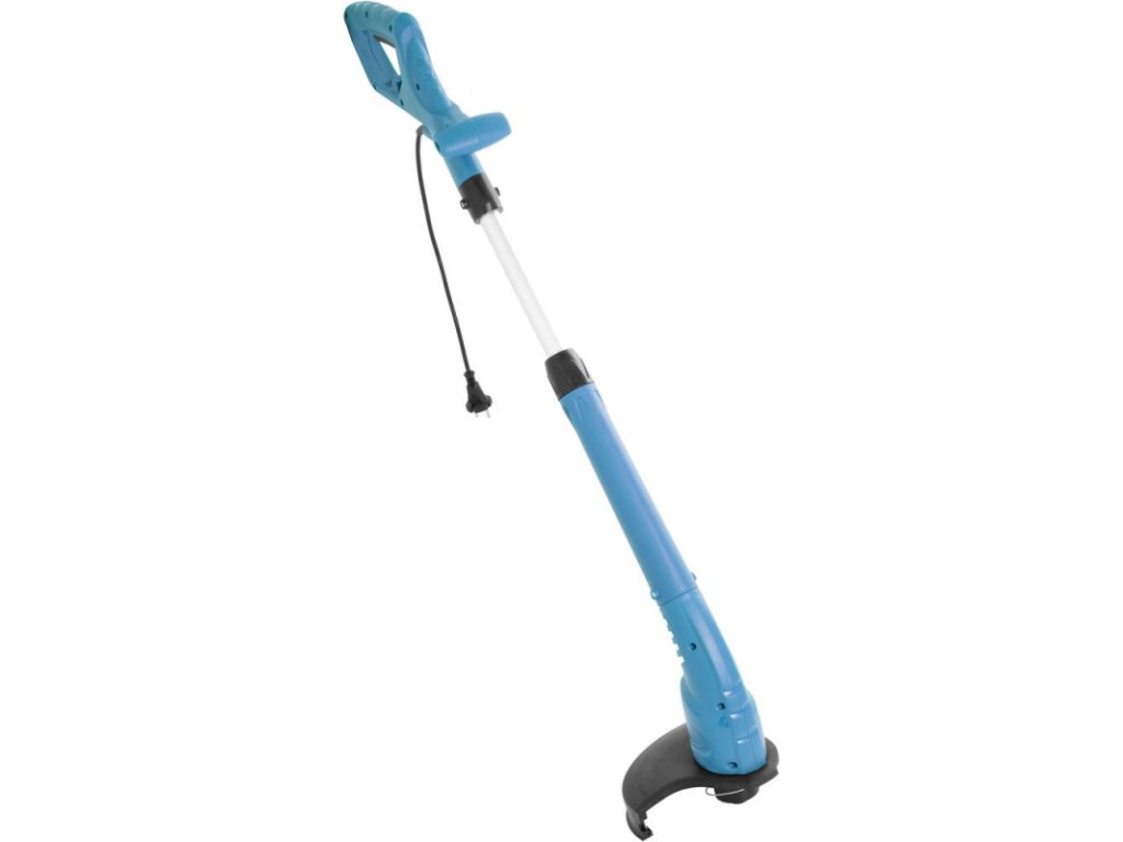 Strunová kosačka vhodná na ľahšie a stredne ťažké vyžínacie práce, rukoväť pre bezpečnú prácu, nastaviteľná pracovná výška pomocou teleskopickej tyče, 2-strunový systém s tlačidlovou nastavovacou automatikou, odľahčenie ťahu kábla.