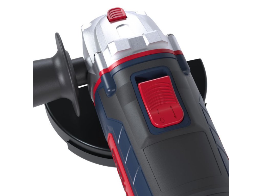 Uhlová brúska zo série elektrického náradia Q9. Mäkká rukoväť pre pohodlnú a bezpečnú prácu. Nízkoprofilové robustné kovové prevedenie hlavy prevodovky zabezpečuje prácu bez vibrácii, aj na ťažko dostupných miestach. Svetelný indikátor napätia. Rýchloupínací ochranný kryt, nastaviteľný bez použitia náradia. Aretácia vretena pre rýchlu a jednoduchú výmenu kotúča. Prídavná rúčka nastaviteľná do 2 pozícií pre flexibilnú a optimálnu pracovnú pohodu. Prírubový kľúč, prídavná rukoväť, rýchloupínací ochranný kryt. Dodáva sa bez kotúča.