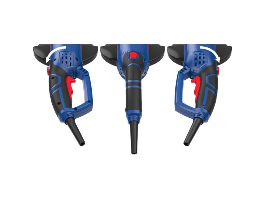 Uhlová brúska zo série elektrického náradia Q9. Obmedzovač rozbehového prúdu a plynulý rozbeh náradia. Mäkká rukoväť pre pohodlnú a bezpečnú prácu. Nízkoprofilové robustné kovové prevedenie hlavy prevodovky zabezpečuje prácu bez vibrácii, aj na ťažko dostupných miestach. Svetelný indikátor napätia. Rýchloupínací ochranný kryt, nastaviteľný bez použitia náradia. Aretácia vretena pre rýchlu a jednoduchú výmenu kotúča. Prídavná otočná rukoväť nastaviteľná do 3 pozícií v 90° uhle pre flexibilnú a optimálnu pracovnú pohodu. Prírubový kľúč, prídavná rukoväť, rýchloupínací ochranný kryt, sada uhlíkov. Dodáva sa bez kotúča.