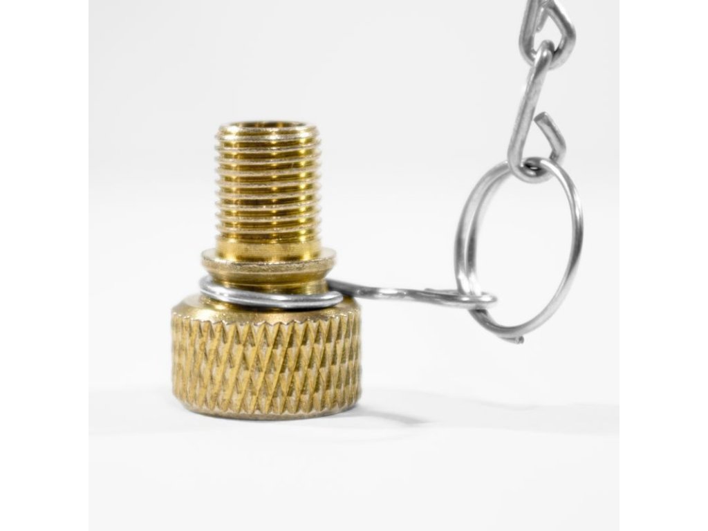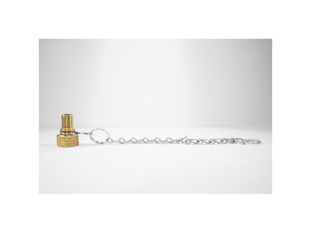 Adaptér na plnenie pneumatík bicyklov, kompatibilný so všetkými typmi hustiliek pneumatík. Upínacia retiazka. Typ balenia: SB (závesné), 1 ks.